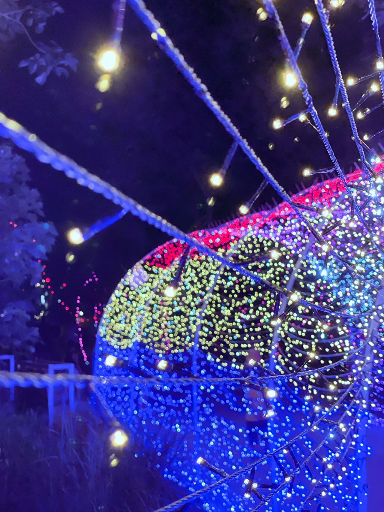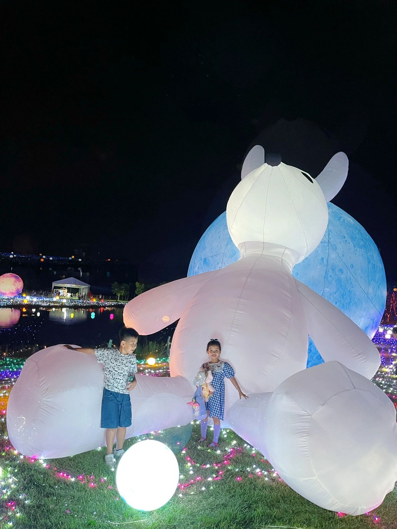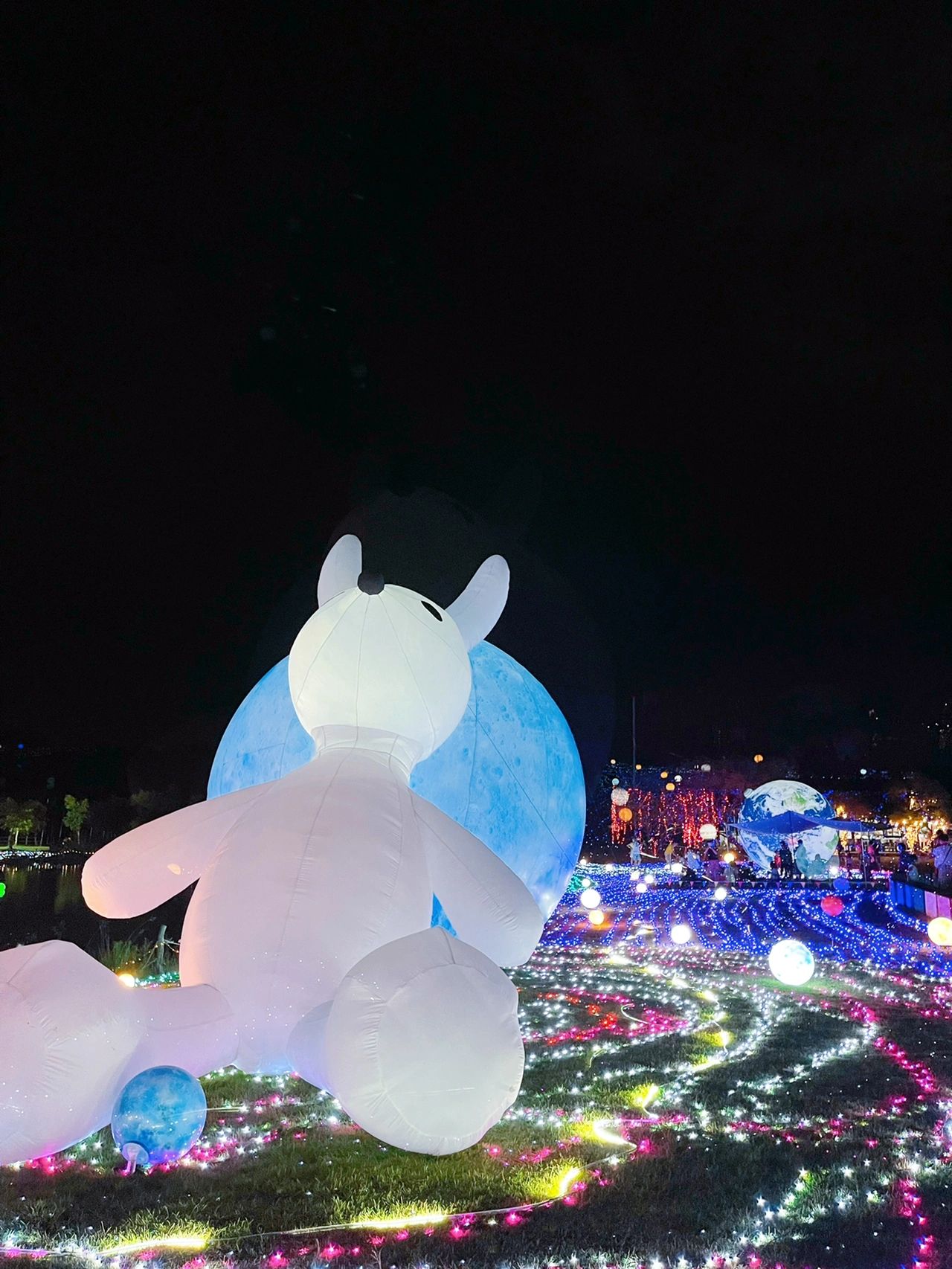 地点📍北纬23度8森林营地 广州过去一个多小时,白天可以野餐,有一个小的游泳池,喂小动物,有滑梯,烧烤,可以DIY风筝 在草地上放风筝,还有拖拉机的车租,这个很特别,第一次玩,30元15分钟,也有电动车,30元90分钟,开着电动车可以随意在园区里游玩~ 白天的草地平平无奇,晚上是亮点!一个个星球慢慢涨起来,亮灯,忍不住哇一声,好美啊! 灯展官方最后这两天,要打卡体验的朋友抓紧时间了。