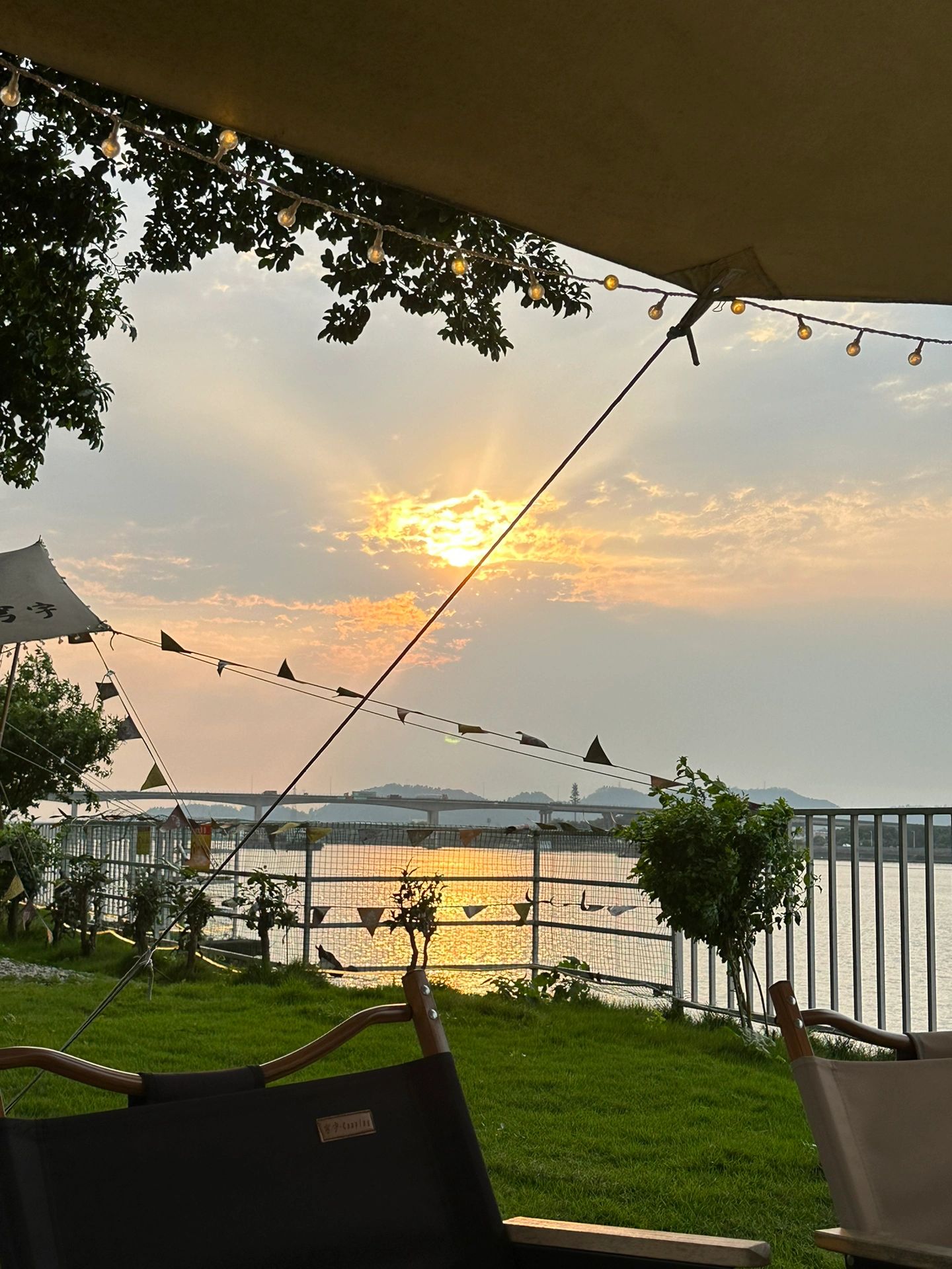 在广州去了还想再去的露营地 营地:穹宇·Camping露营地 地址:N98乡道沙头水闸以北鱼塘(自驾很方便) 特色: 🌇落日超级好看,而且下午和晚上吹着小风在江边非常惬意和舒适。 🥩食物的话可自带可购买商家套餐,按人头收费,有烤肉和下午茶,烤肉的锅什么的都是提供的,我们点了烤肉,量很足。 ⛺️可以钓鱼,按照杆收费,晚上还有露天电影看,中间有草坪可以带小孩玩耍。 总之体验很不错,平时工作太累花半天去放空一下自己也很舒适。