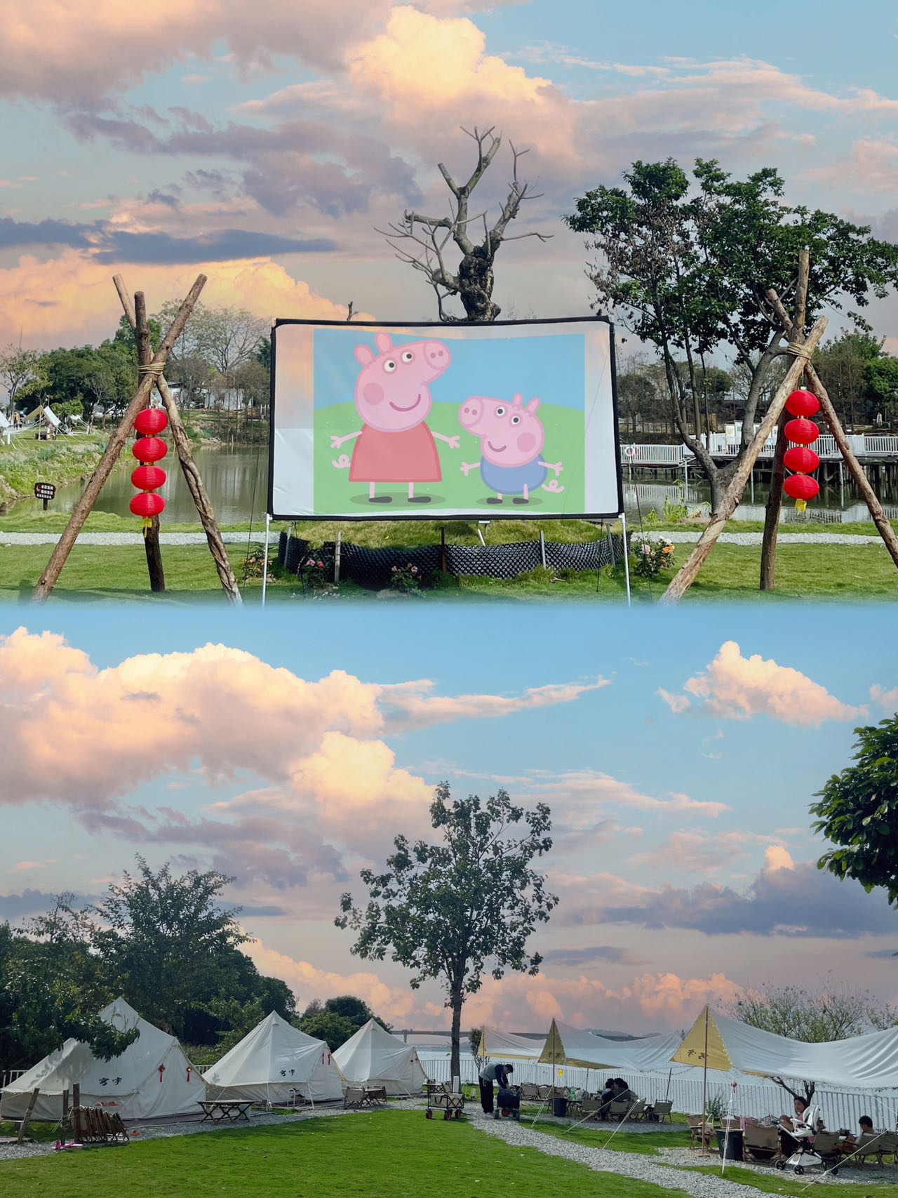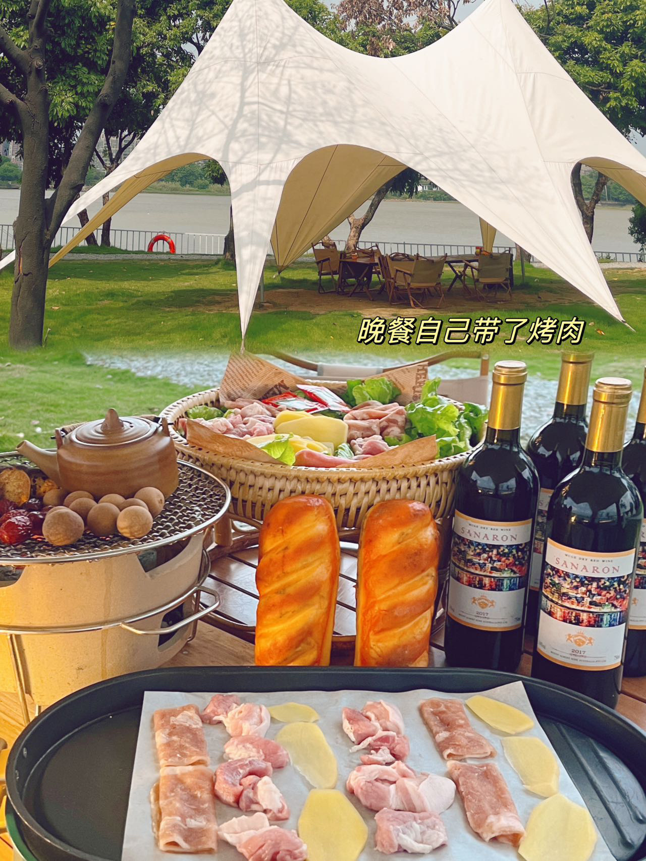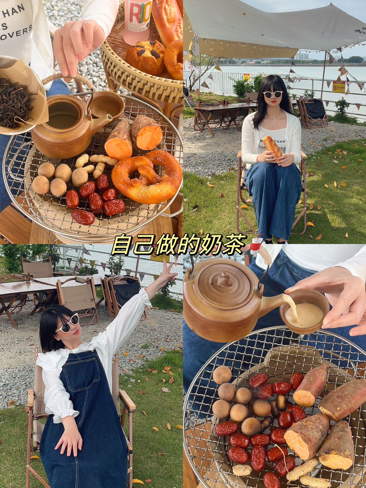 我们选择了一个靠江的帐篷⛺️下午先围炉煮茶🈶️桂圆、红枣、番薯……和姐妹拍拍照📷草坪、帐篷⛺️真的好看!