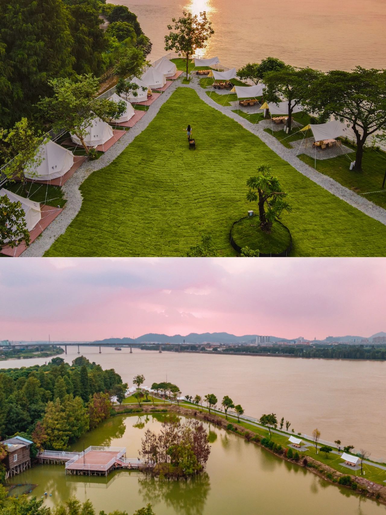 北斗桥前,沙湾江边,这里有日落与晚霞 露营不远行,就在广州穹宇Camping露营地 营地距离广州市区30分钟车程,是广州相对比较高端的营地。营地自带私家湖畔,湖畔中间还有1个小岛。 营地还有一个3000平超大草坪,可接各种商拍。直播基地,户外婚礼,时装走秀,t台走秀,模特走秀,接受定制活动策划。