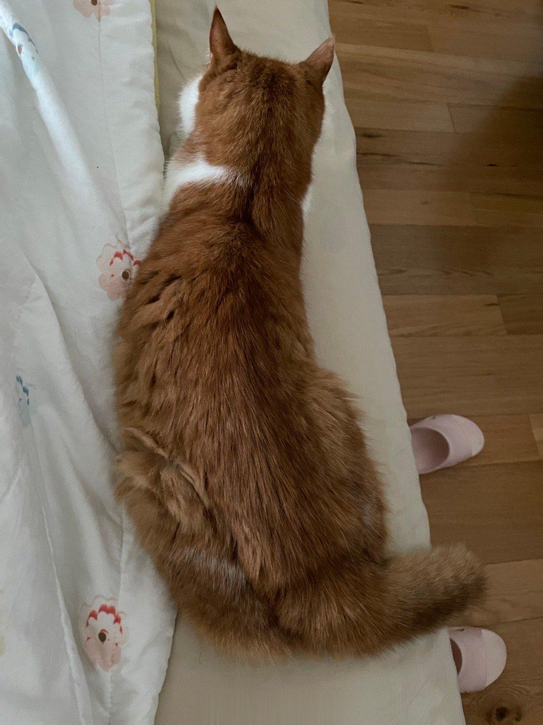 #萌宠那些事[超话]#一起睡个回笼觉吧!小猫咪很懂事很客气,只占一小条边边,当