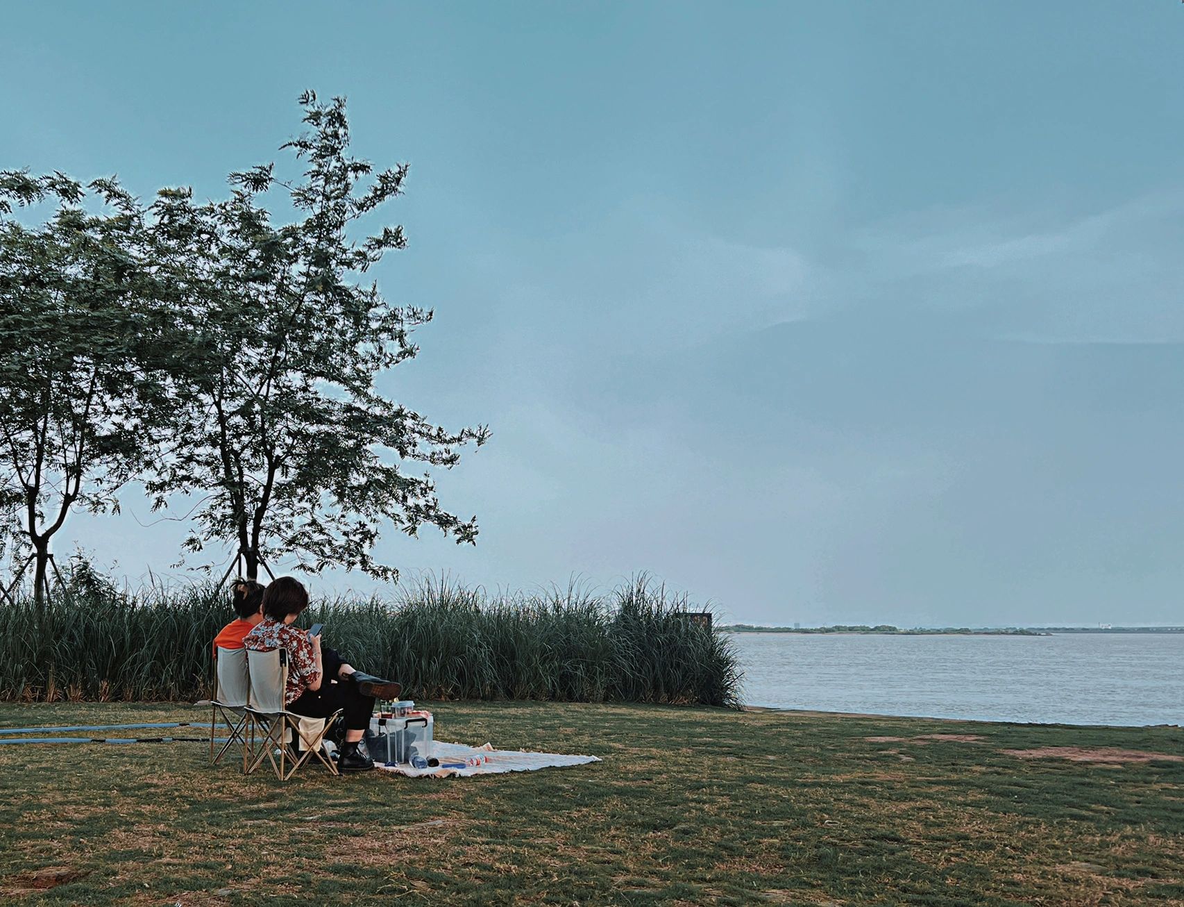 才发现除了滨海公园外的另一条绿道,绿道的末段就是凫州大桥了,才发现原来这里就是被无数博主po过的露营圣地。