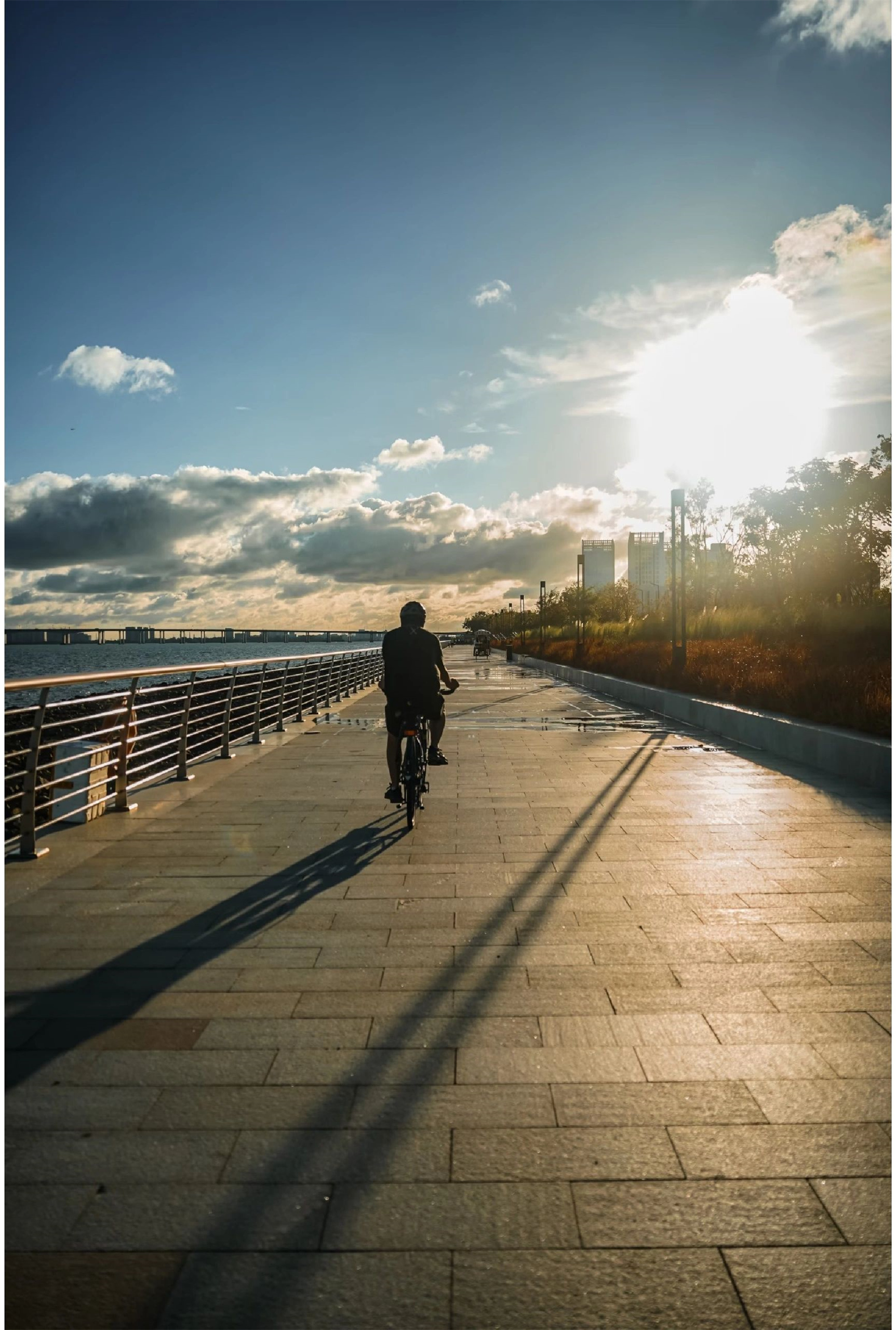 4、碧道。公园北边蓝色的都是碧道,溜达步行或者踩单车都十分适合,不时还有各种健身娱乐设施。