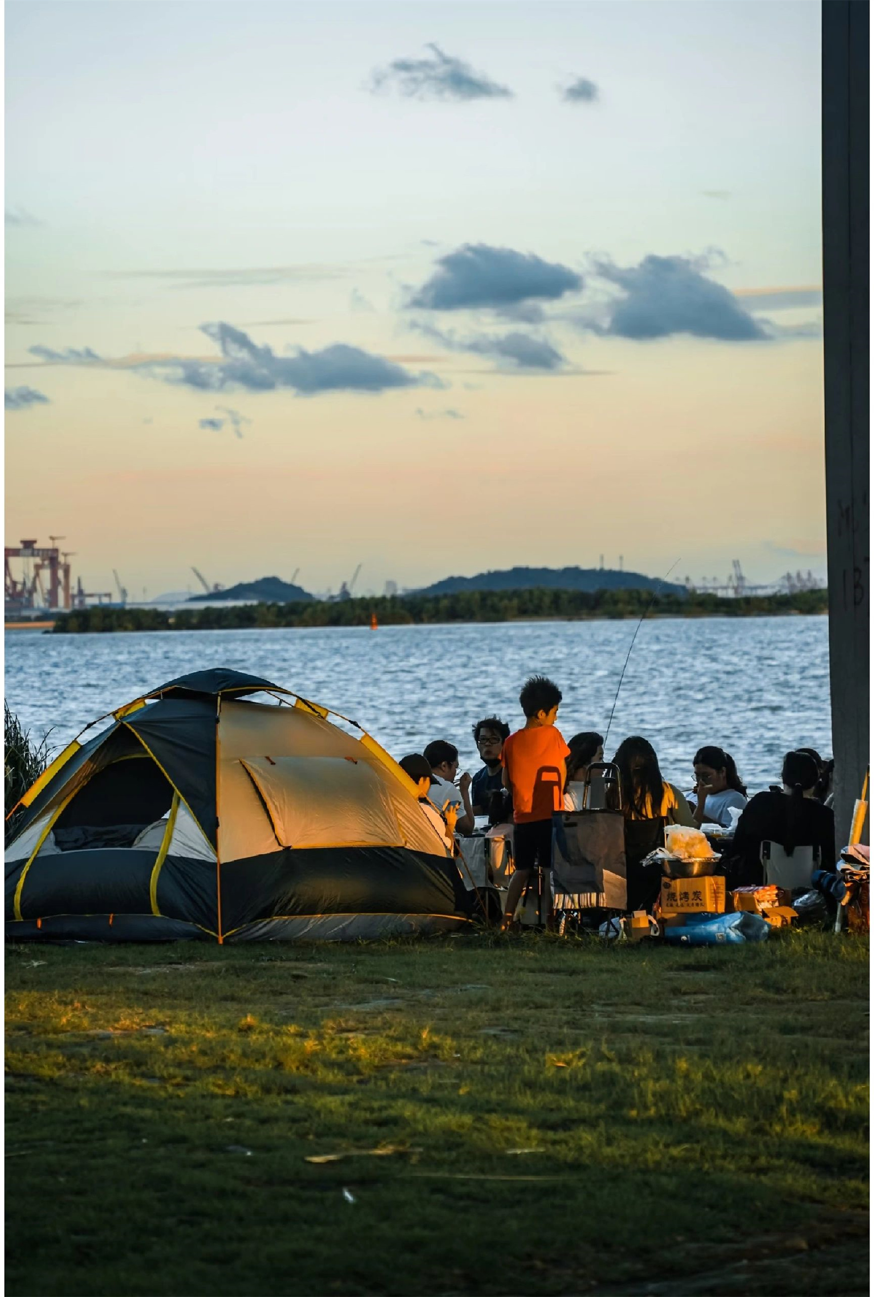 凫洲大桥桥底还有个小公园,有大片的草坪,不少人在此露营,吹着傍晚的海风看着日落~