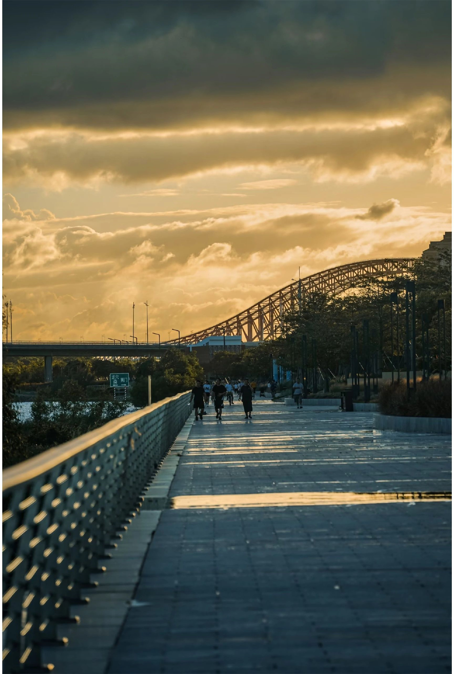 🔹夕阳西下,霞光洒向波光粼粼的江面,凫洲大桥在暖黄色的夕阳中格外突出。