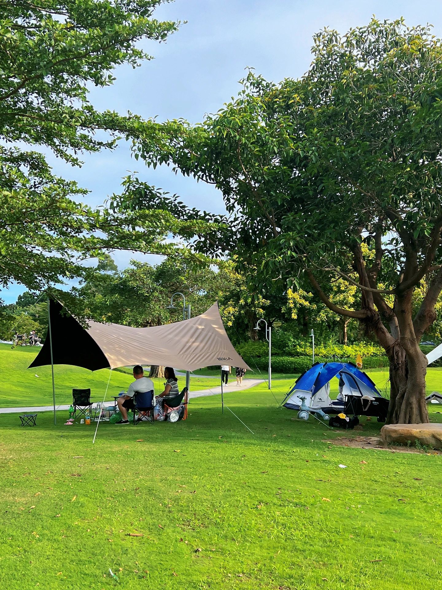 一开始我还支天幕,后面都懒得支了,随便找个树下更凉爽。