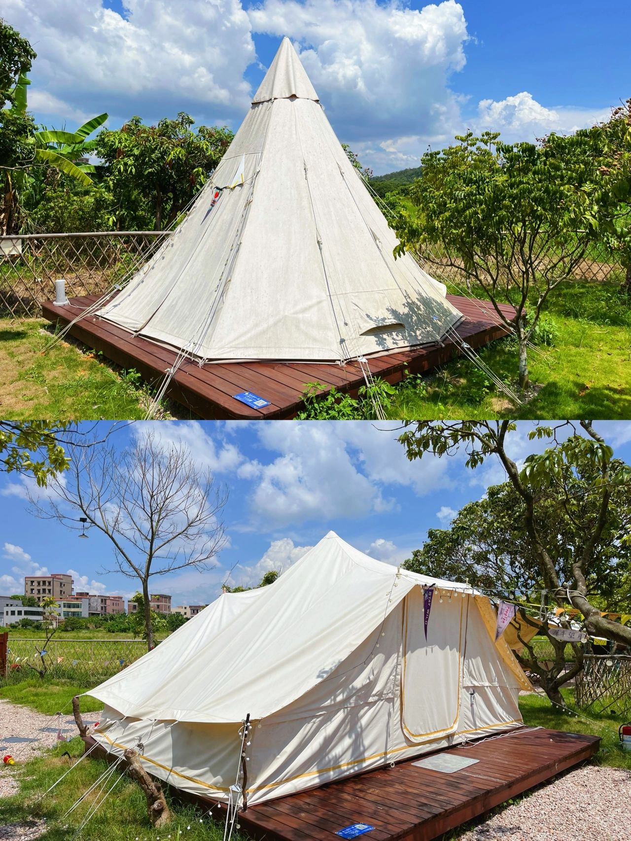 露营帐篷区域在一片果园里