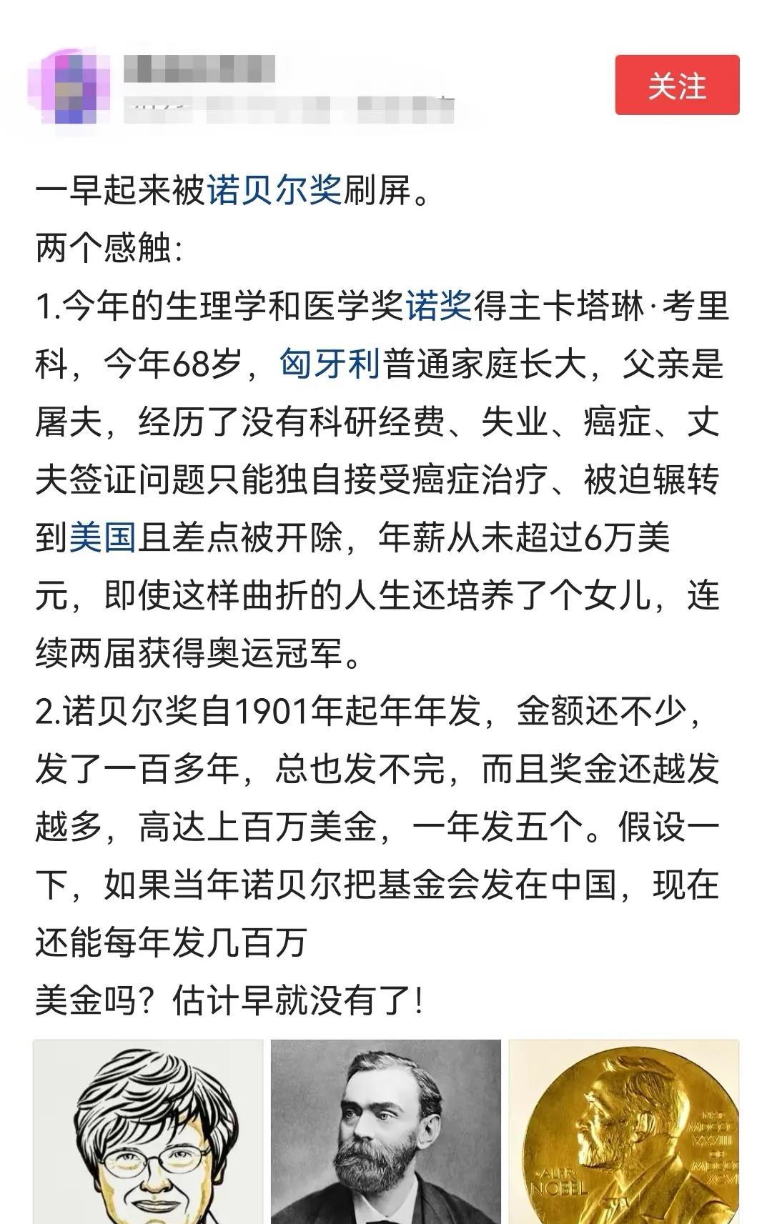 没必要捧上天,中国这样的人少吗? 很不少!但是好像从来没见他们这样吹捧过 黄大年、南仁东、潘建伟、马伟明…… 另外,所谓的诺贝尔奖,看中的并不仅仅是你取得的成就! 他们可不只是在乎你为人类做出了多大的贡献,他们也在乎你是什么样的人、哪个国家的人、信仰什么、秉持什么样的价值观,有时候后者可能更重要。 尊重并恭喜每一位获得自然科学和文学奖的人,但是没必要过分拔高,更没必要过于贬低自己。