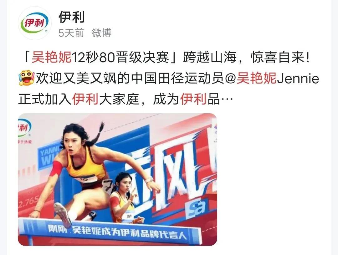 林雨薇后来居上要笑到最后,丢失亚运会冠军对吴艳妮最大打击是商业代言,像刚官宣的伊利已经把关于她的微博删除,极速撇清关系。 田径运动员巅峰期就几年,吴今年已经26岁,明年只有一个重要的奥运会,她能进预赛就不错。林雨薇今年24岁,这次获得亚运会冠军后签了比亚迪代言,即便明年奥运会跑的不好,也不影响接代言。