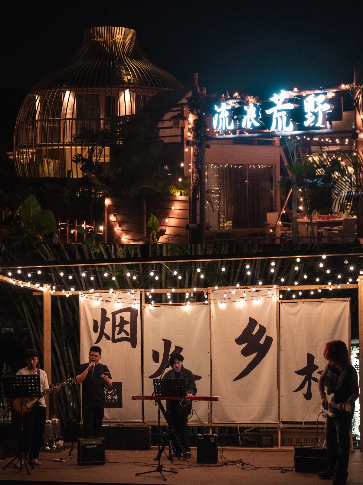 💥不用带装备也不用搭帐篷,还有篝火,星空电影🎬,时不时更新拍照打卡场景,营地居然有个小舞台,唱歌设备很齐全,户外K歌很有感觉~