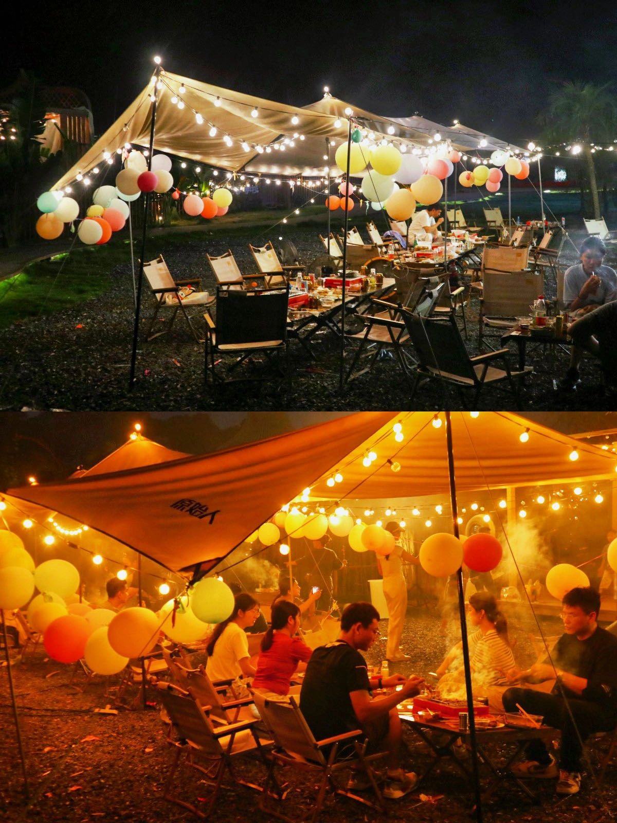 户外精致下午茶🍮 手冲咖啡☕ 桌游🃏 风筝🪁 飞盘🥏 丰富烤肉盛宴🥩 篝火🔥 户外KTV🎤