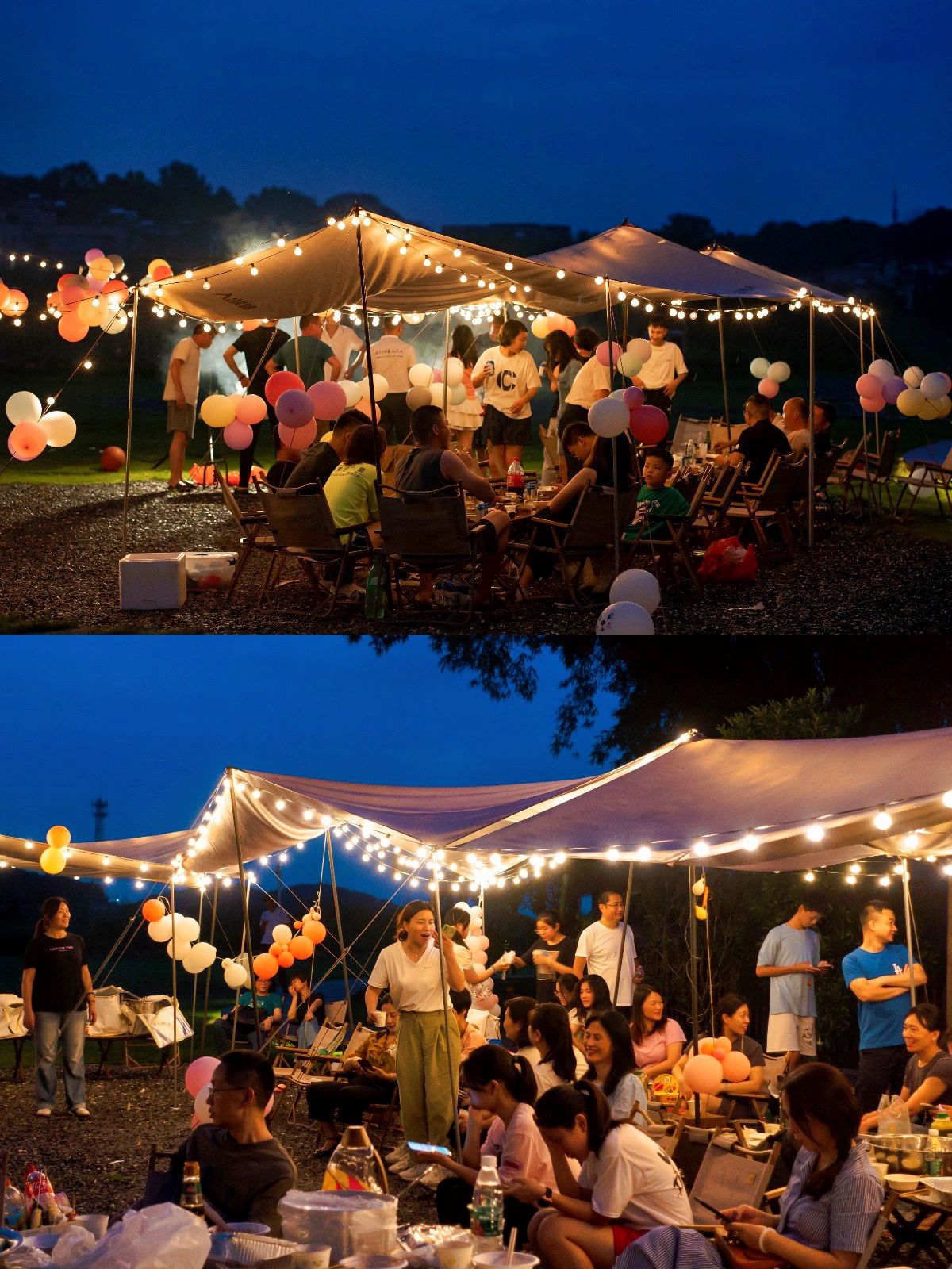 1.晚间氛围感Max!晚霞🌆、天幕⛺️、蛋卷桌、露营灯💡...绝妙的夜间露营氛围让这个晚餐与众不同✨