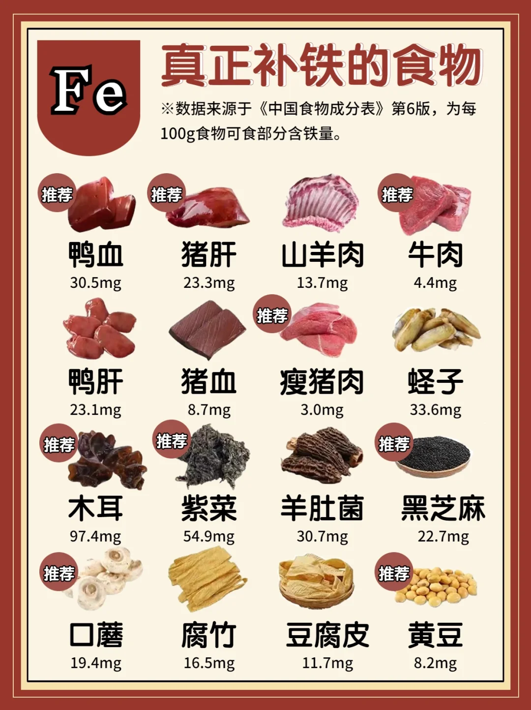 4个月开始,食补为主,母乳宝宝4个月前无需补充,4-6个月可预防性补充,6个月之后吃高铁米粉,搭配点红肉泥、肝泥之类的食物。