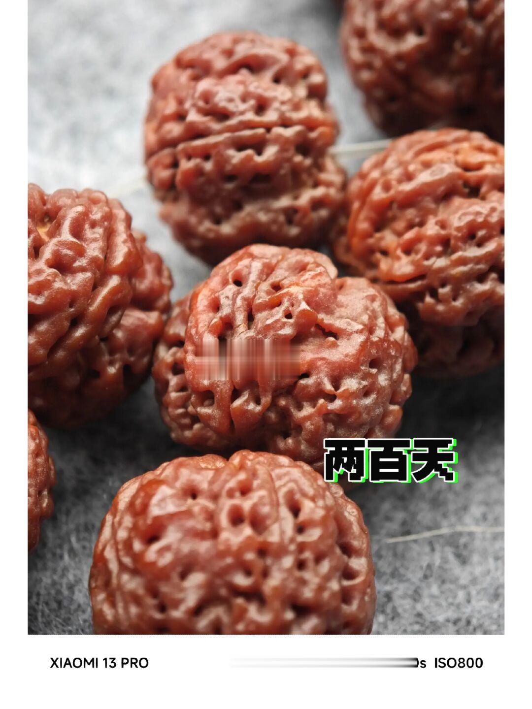 买了这么多大金刚 没想到这串便宜的下水泡的颜色色差算最小的那部分 才200块,整天还算规整,没太歪的,尺寸也挺统一,颜色也比较统一 突然有点期待打底以后的效果了呢 以上是22年09月22日发布 ———23年05月10日更新——— 这一串大金刚玩了大概两百天了,发一下目前它的状态 盘玩方式比较佛系,基本就是纯佩戴,偶尔盘盘,两个月左右刷一下,没上油,目前也红了,还算能看,但是上色有点不均匀,毕竟是佩戴,交给时间吧,玩一年整再更新效果