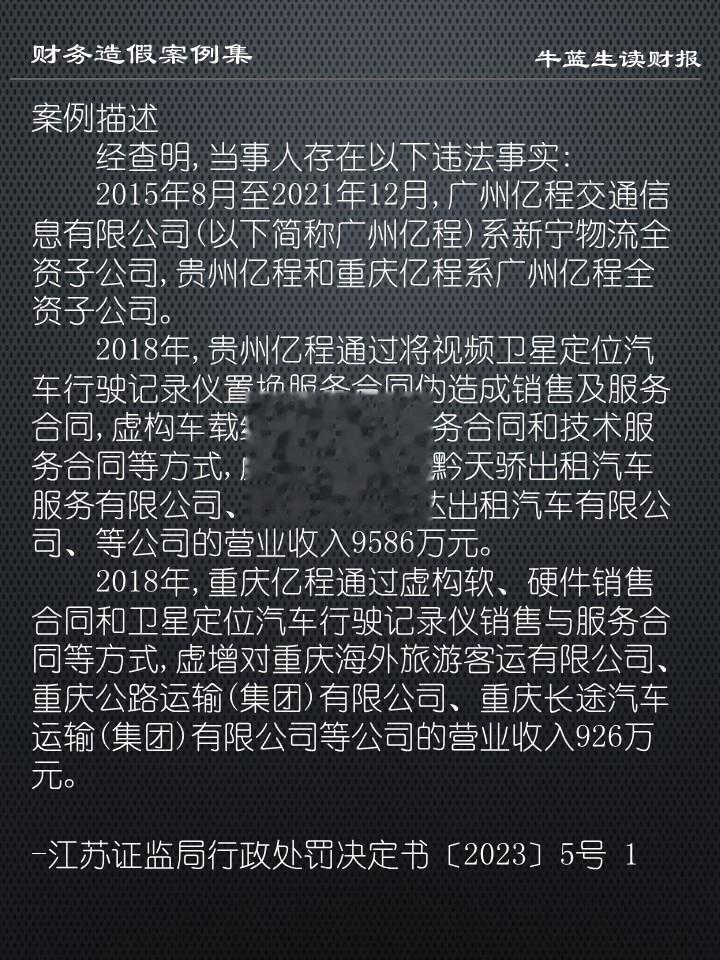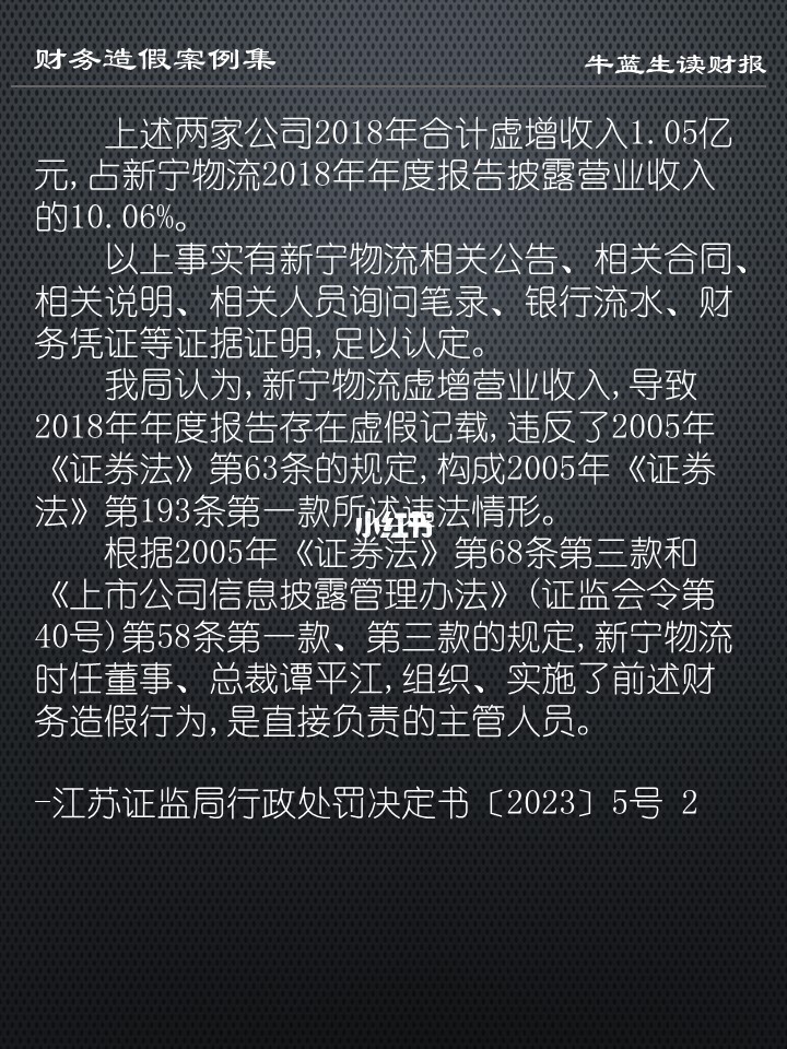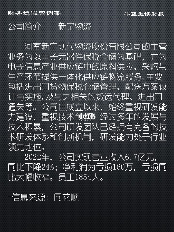 -2018年,新宁物流两家孙公司通过伪造或虚构相关销售及服务合同,合计虚增收入1.05亿元,占新宁物流2018年年度报告披露营业收入的10.06%。
