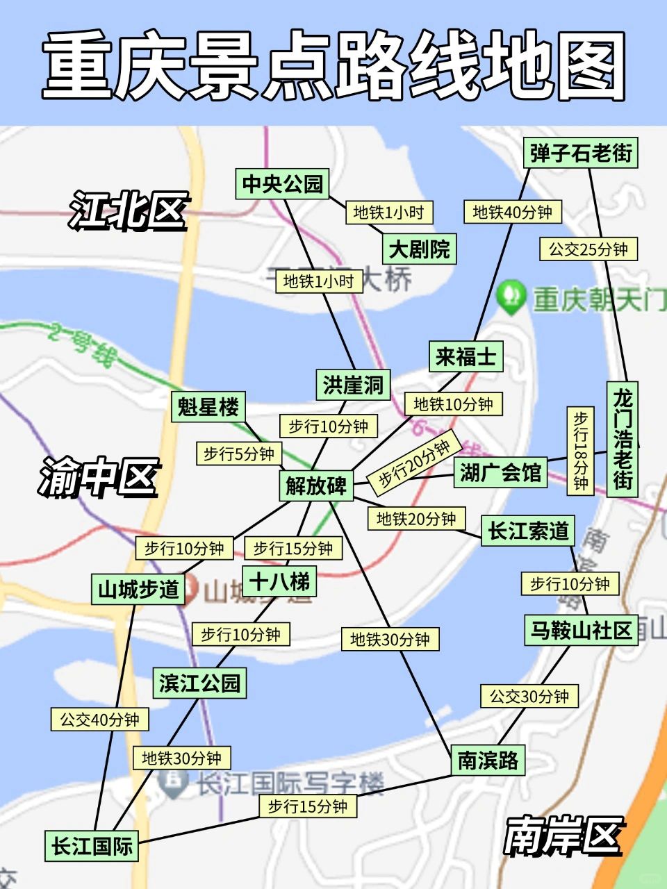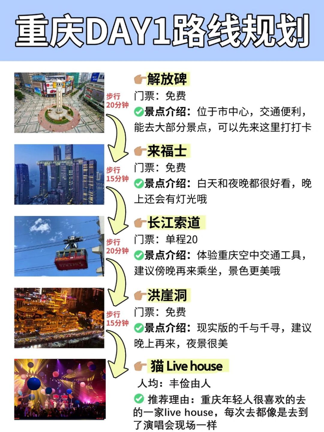 解放碑→来福士→长江索道→洪崖洞→猫 live house