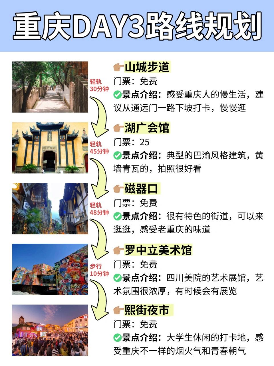 山城步道→湖广会馆→磁器口→罗中立美术馆→煕街夜市