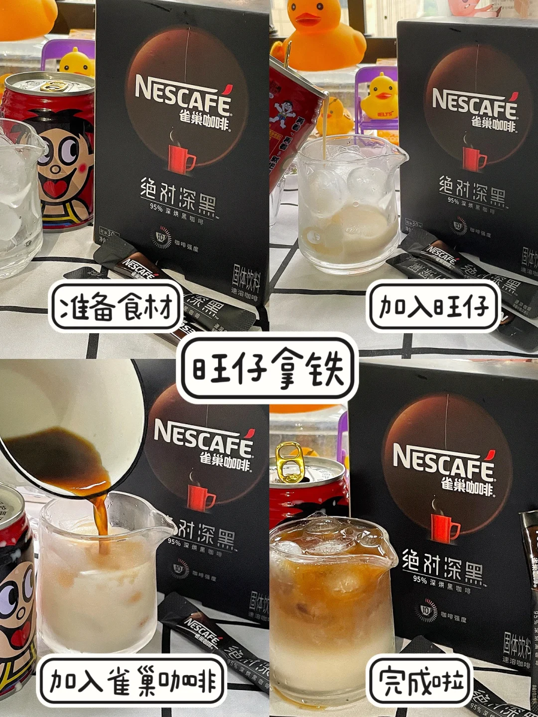 雀巢绝对深黑40ml咖啡液☕️➕400ml旺仔牛奶🥛➕冰🧊