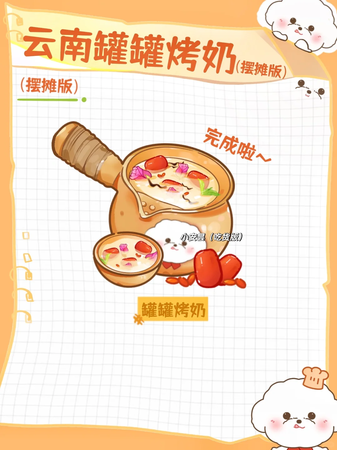 原来罐罐奶茶这么好喝!啊啊啊! 朋友摆摊卖🤫1W~配方来了‼️抓紧时机🔥 🥣云南罐罐烤奶(摆摊版) 🥣材料准备 5克茶叶➕250ml纯牛奶➕15克糖浆(冰糖)➕5克玫瑰花干➕15克红枣➕枸杞 🥣制作步骤 1⃣️倒入罐中红茶叶,翻炒出茶香,加入200ml冷水,煮到水沸腾。 2⃣️水热加250ml纯牛奶,继续加热,奶茶微微冒泡加入糖浆,玫瑰花,红枣,枸杞等,等待再次沸腾。 完成啦~ 朋友给我的配方🤫宝宝们快做起来吧 💗下一期需要什么教程可以私信安安喔~谢谢薯薯🌹