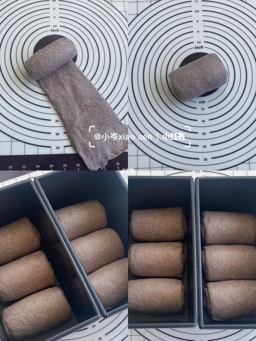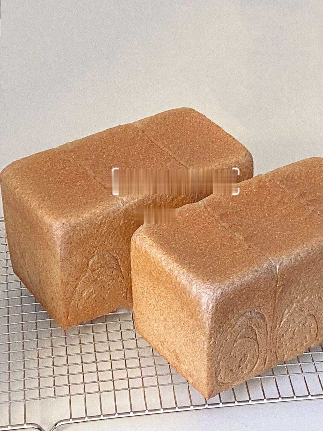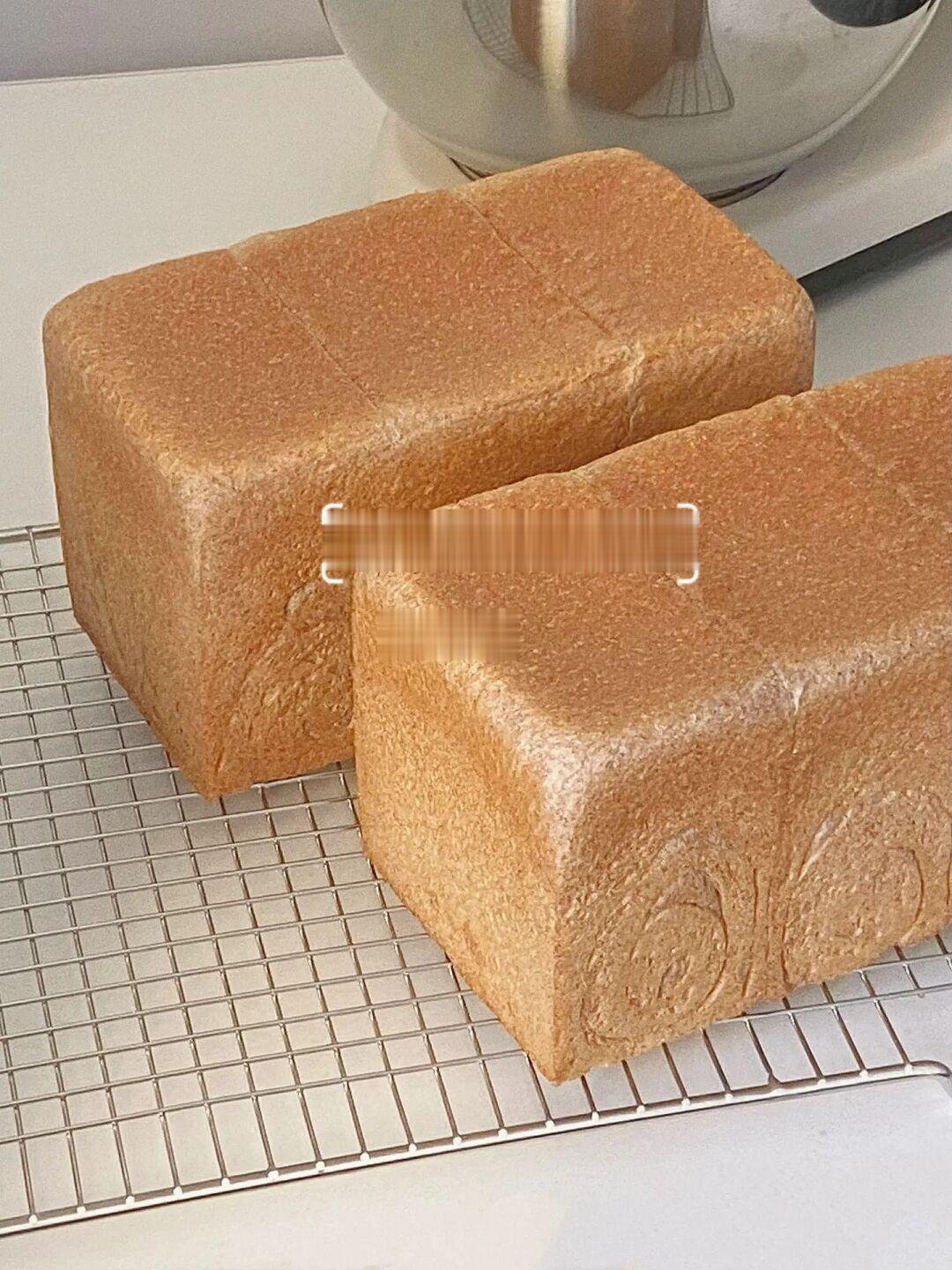 12.放入预热好的烤箱,下层,普通银色吐司盒,上火170度,下火180度,烘烤40分钟左右;低糖吐司盒,170度,25-28分钟左右。(根据自己吐司盒、烤箱调整温度时间)