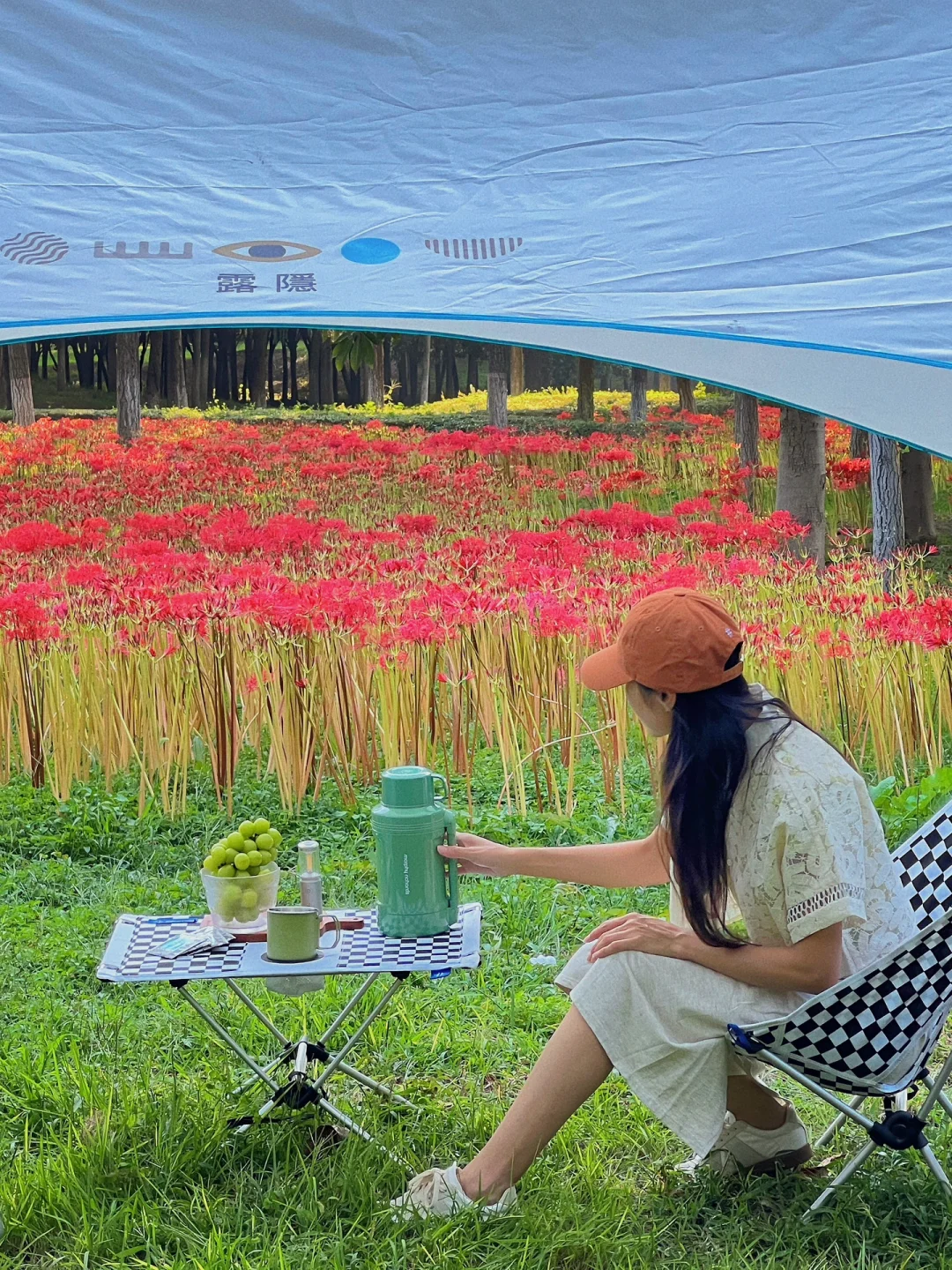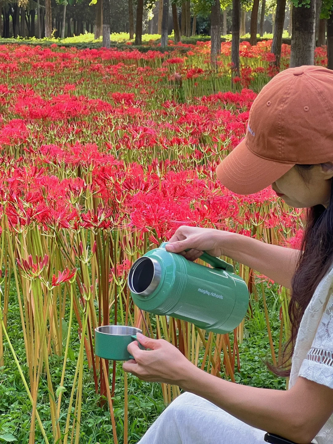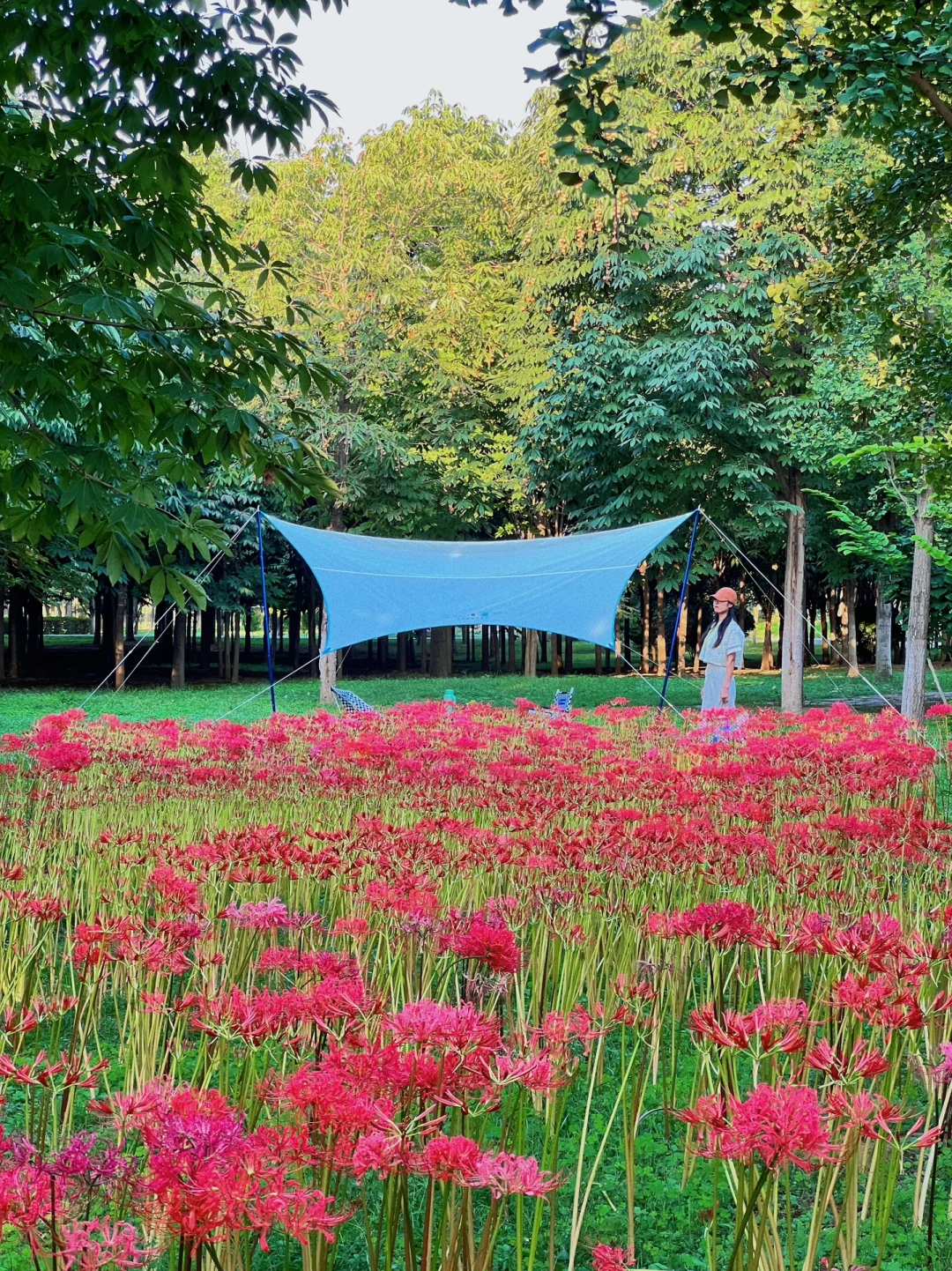 在公园深处有一处静谧的彼岸花海,非常密,而且好几片。