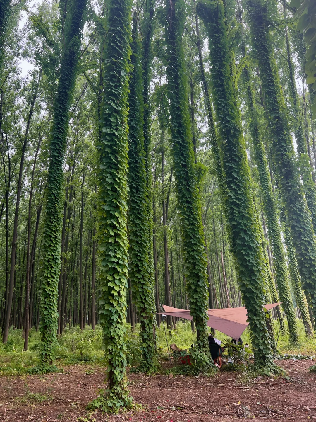 这一大片的治愈绿,腾缠着树。朋友圈被问疯了,真的是西安。拍照感觉神秘森林里面。 停车走到林子大概50米左右。 [向右R][向右R]地址:导航 沣水家庭农农场,在长安秦镇交界处。 西安出发50分钟左右,就在导航点附近,看最后图画黑圈的位置,路的西边一大片郁郁葱葱的林子。 [打卡R][打卡R]树林正常都有蚊虫,去做好驱蚊,介意勿去! 附近没有卫生间,停车位紧张,请文明停车,不要档路。 附近没有垃圾筐,请不要嫌麻烦,随手一定要带走!