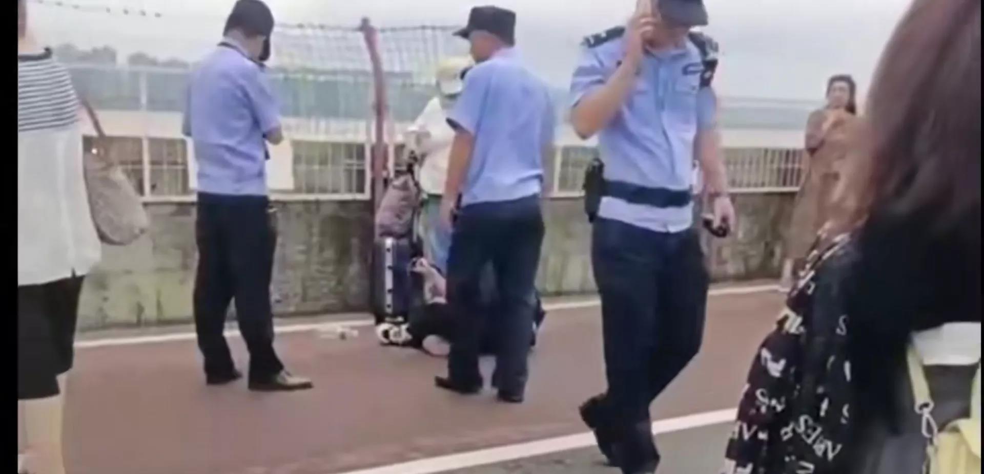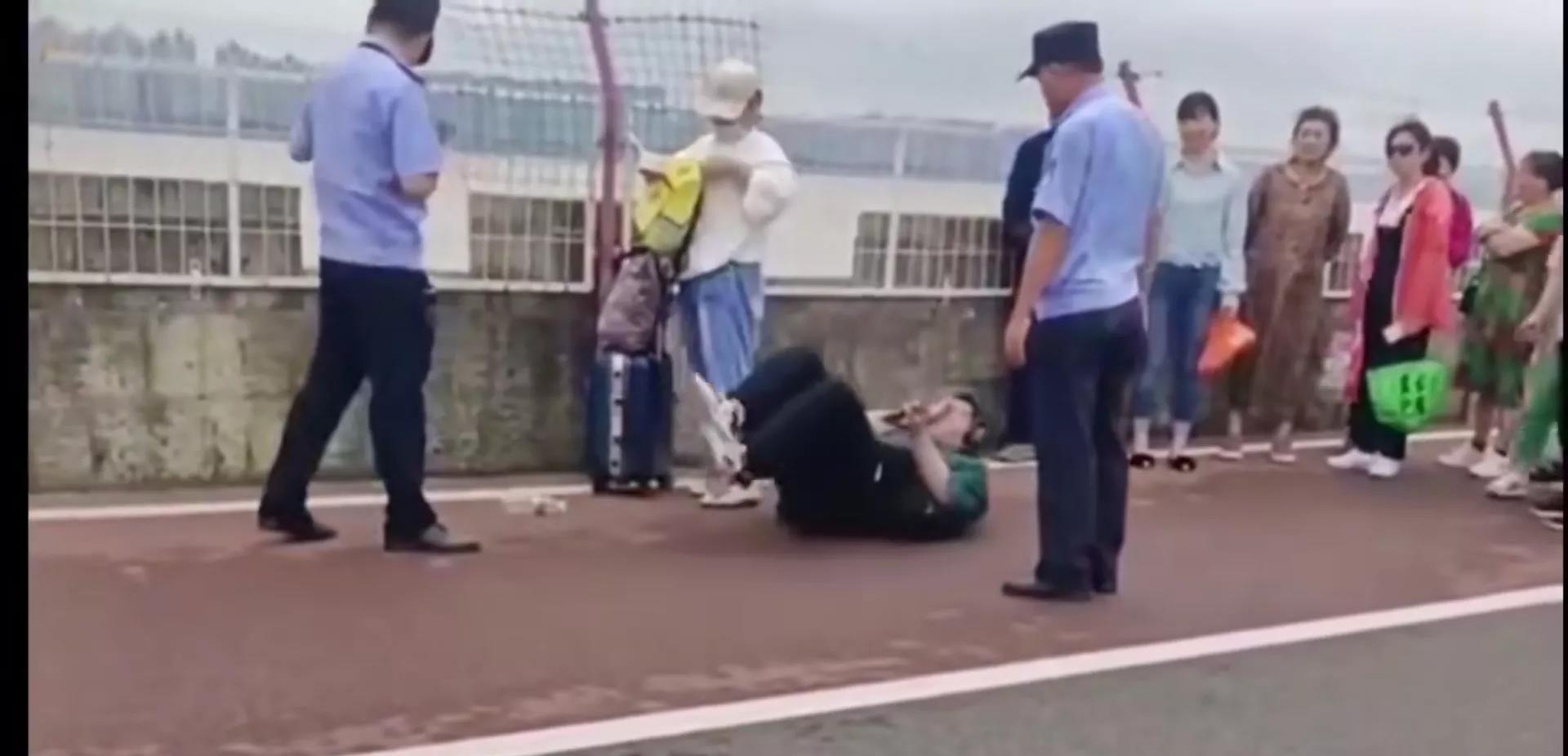 跟前有一位白衣女士,好像是他的母亲,一方面安抚好说,一方面还在行李包找东西,不知道怎么把警察也叫过来了。警察都来了,这位巨婴还在闹,而且还在路面上打滚,口里不停喊着“我要买手机,我要买华为手机”……