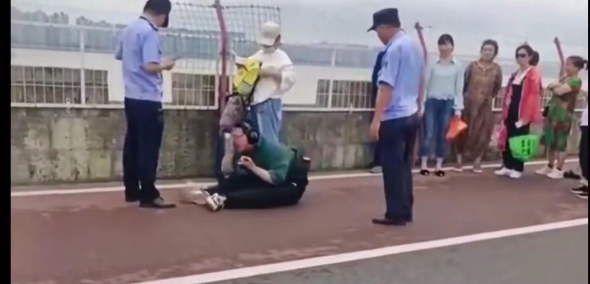 一个25岁的大小伙子,头上戴着耳机和眼镜,穿着绿色体恤,长得肥头大耳,竟然在一条江堤路上打滚哭闹……