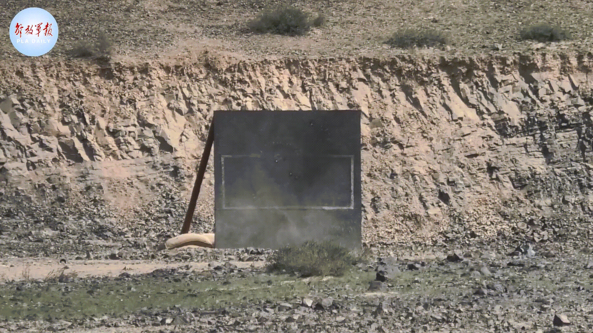 #动图# 发射后从炮管尾部抛弃PF8⑨火箭的弹壳[钢镚儿],弹壳上的文字DZY/PF98可能代表“弹装药PF98”,头部的文字DRD11A含义不明,从钢靶板来看可能是DRD11A型破甲火箭?和卡尔古斯塔夫弹药相似,带有药筒的无后坐力炮弹