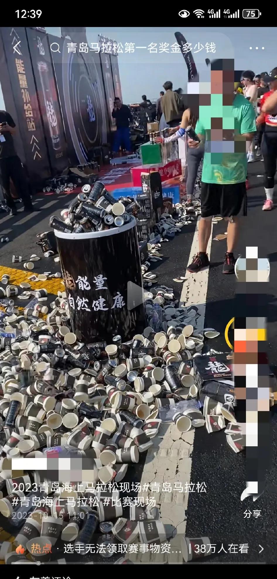 这样的马拉松不举办也罢! 参赛运动员随意向路上扔用过的食品,而且很多很多是喝了半