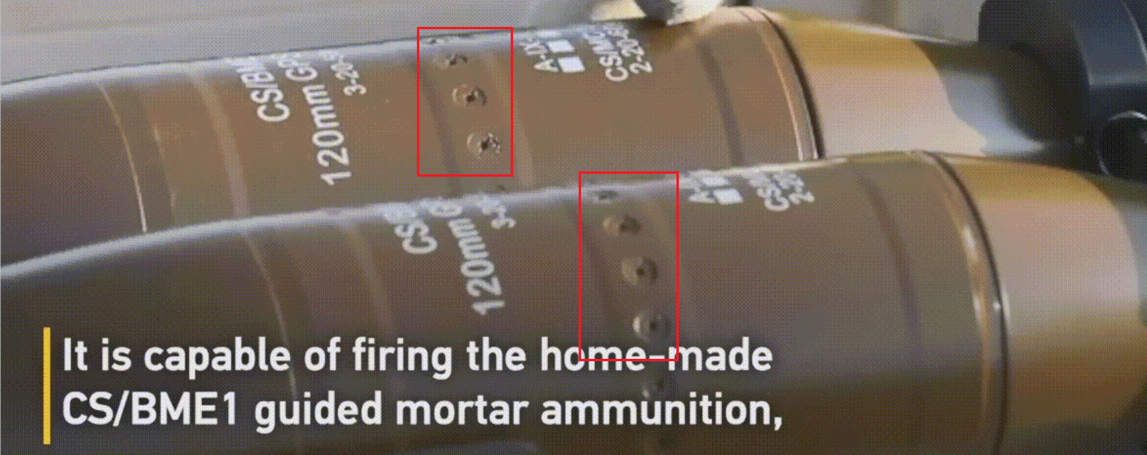 #随笔# 这种没有鸭翼的制导火箭靠什么修正弹道呢?或许头部这一圈小孔是微脉冲发动机喷嘴(蓝框处),靠它修正弹道,和120mm制导迫弹的微脉冲发动机相似[努力]