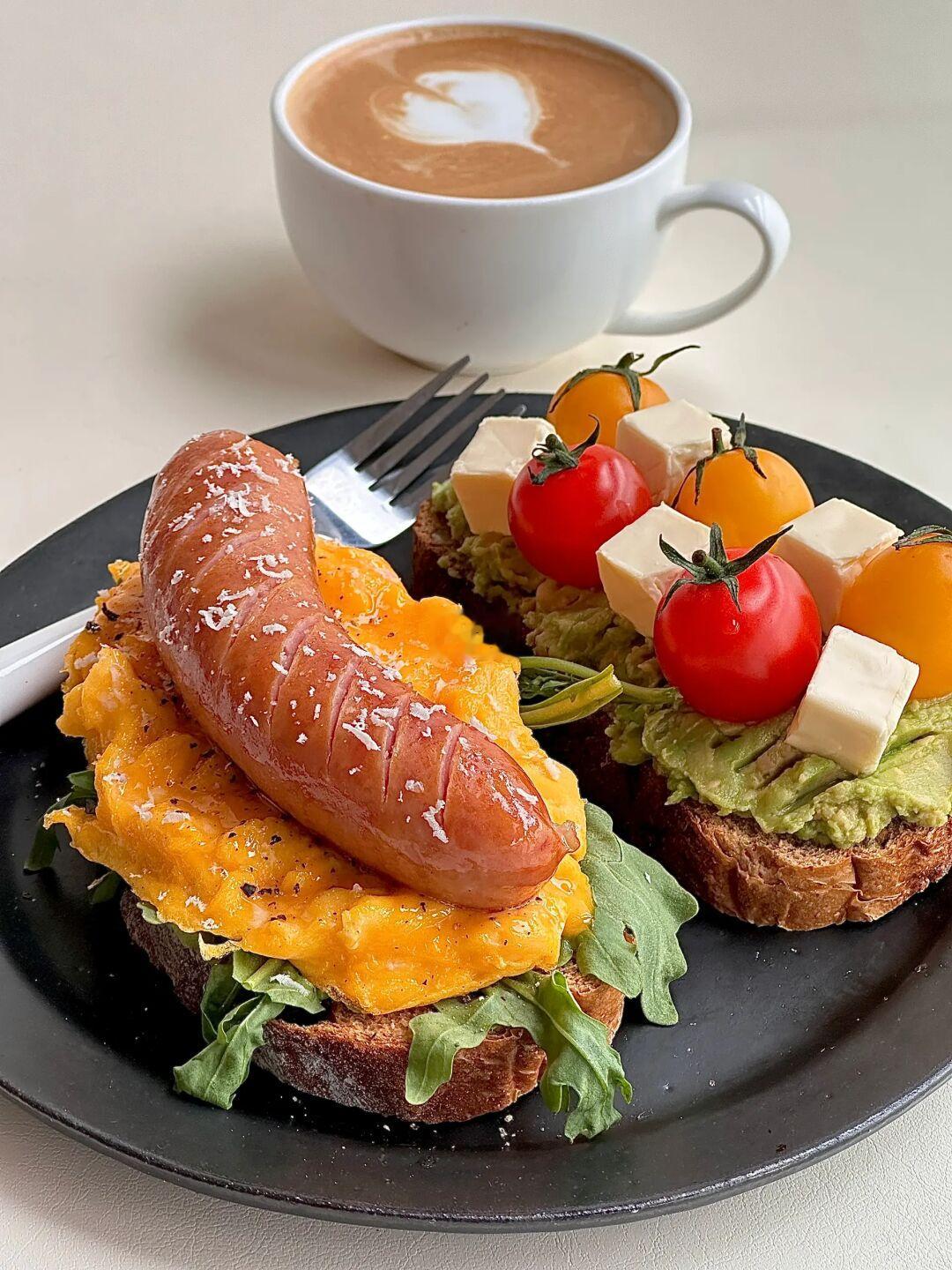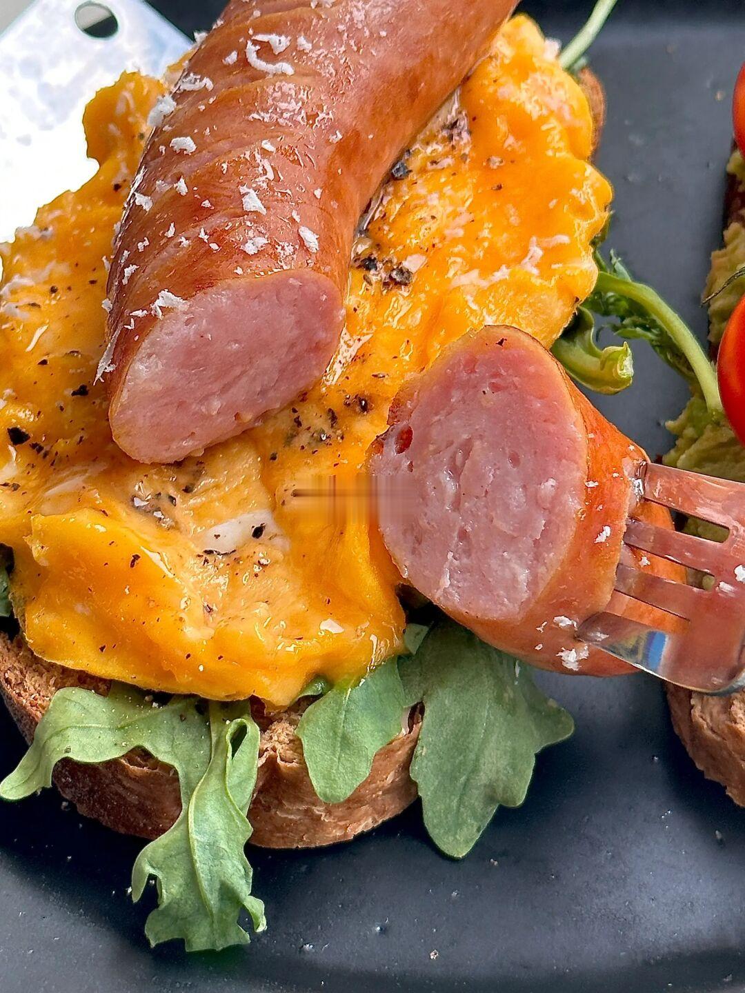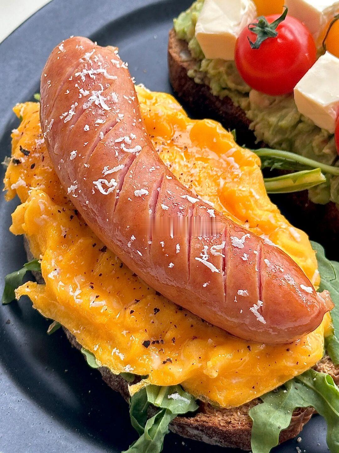 今日份早餐🥣|烤肠滑蛋&牛油果🥑番茄奶酪🧀️开放式欧包三明治