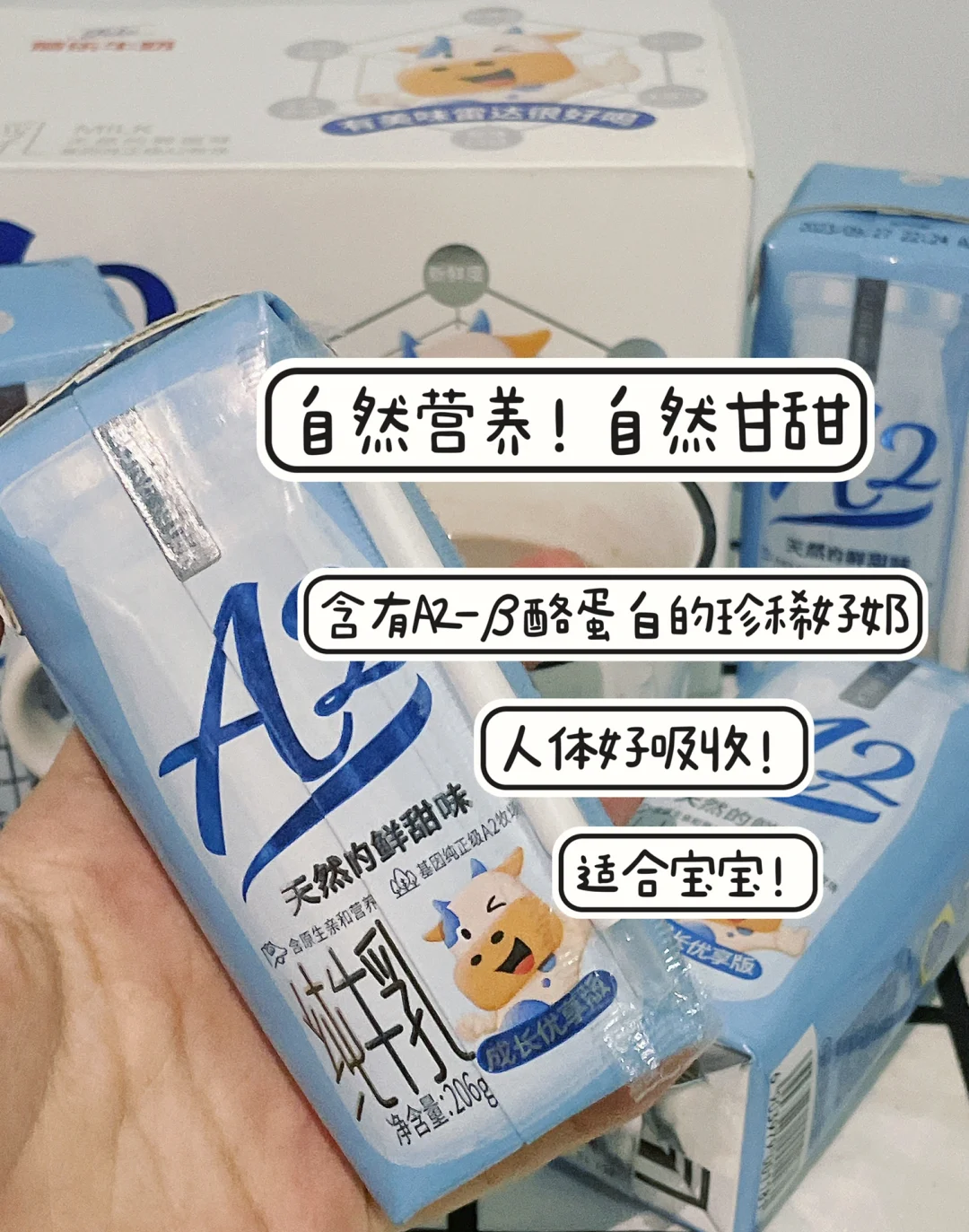 A2是奶牛基因筛选出的纯种A2牛产出的牛奶,含有A2-β酪蛋白,更易于人体吸收,更加适合宝宝,宝宝离乳首选!可好喝啦!💗