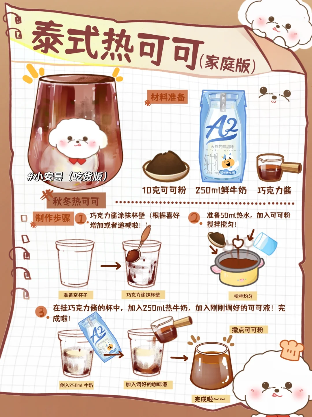 10克可可粉➕250ml鲜牛奶🥛➕巧克力酱🍫