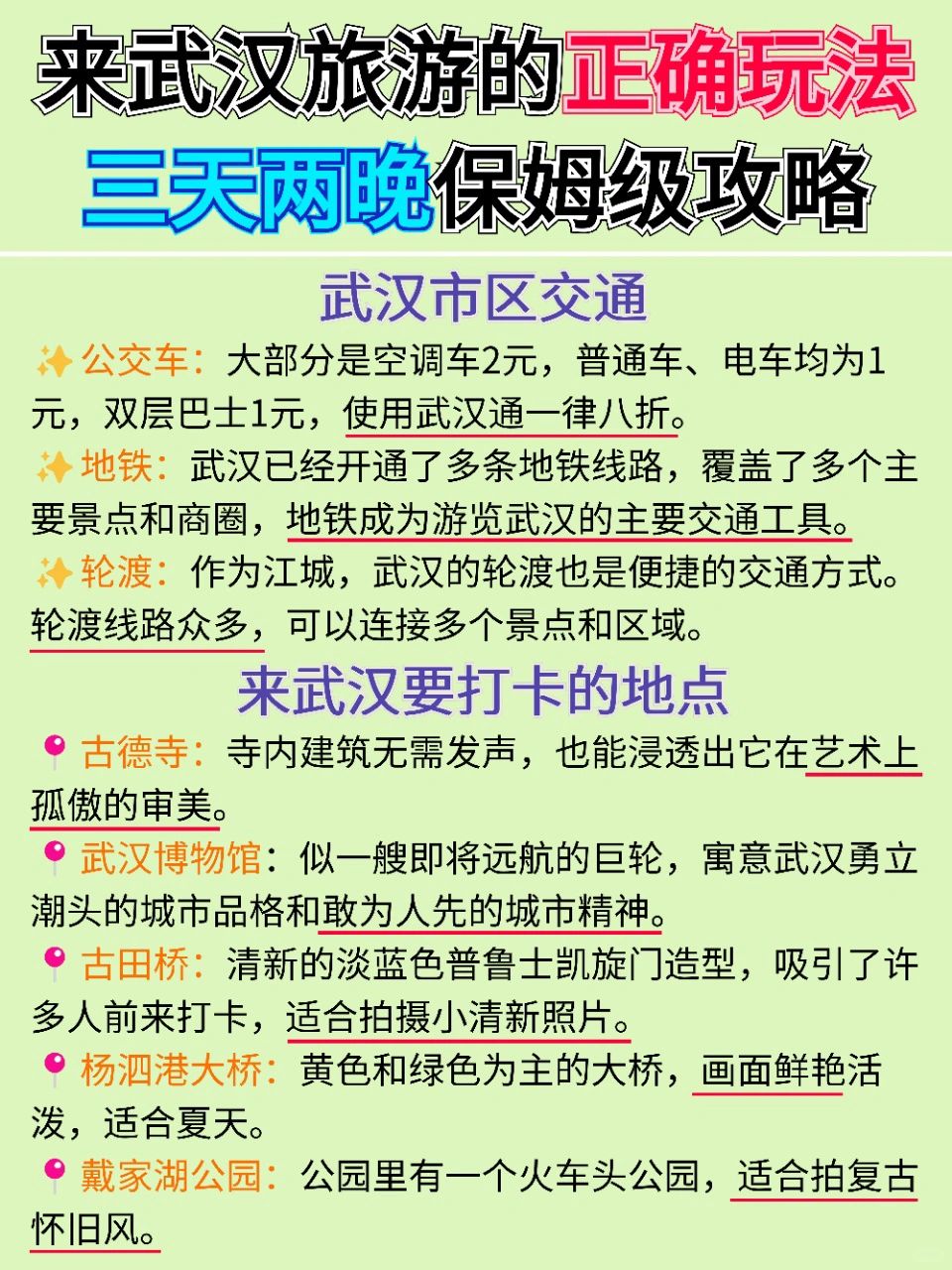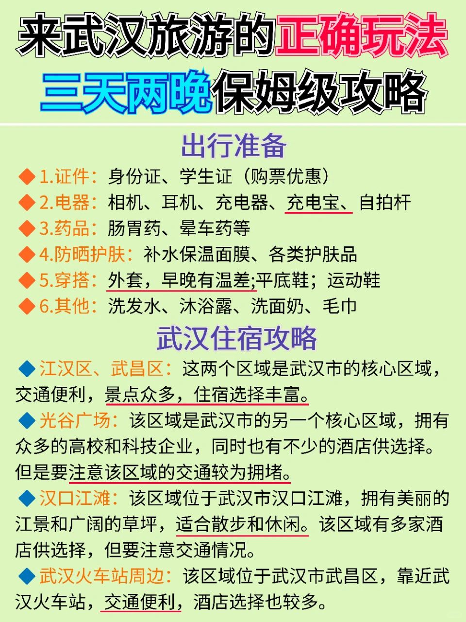 🔶预订住宿:如果计划在武汉逗留多日,最好提前预订酒店或民宿,以确保住宿的安全和舒适。