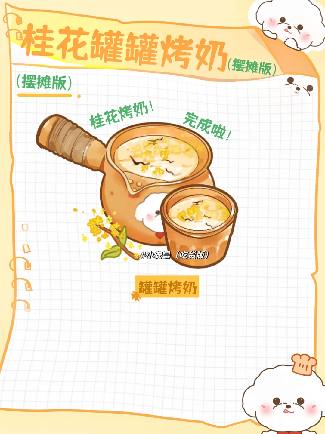 桂花罐罐烤奶(摆摊版)🧋 最近摆摊🉑️🔥,uu们安排起来! 一杯桂花罐罐烤奶!温暖你的心 🌡太适合秋冬啦 🥣材料准备 10克红茶➕200ml纯牛奶🥛➕15克糖浆(冰糖)➕水➕桂花 🥣制作步骤 1⃣️将10克红茶和桂花茶入罐中,开小火翻炒出茶香,翻炒15秒,加入200ml冷水,煮到水沸腾! 2⃣️ 水热沸腾关火加入冰糖,加入200ml纯牛奶,继续加热,奶茶微微冒泡再加入桂花,等待再次沸腾,完成啦!