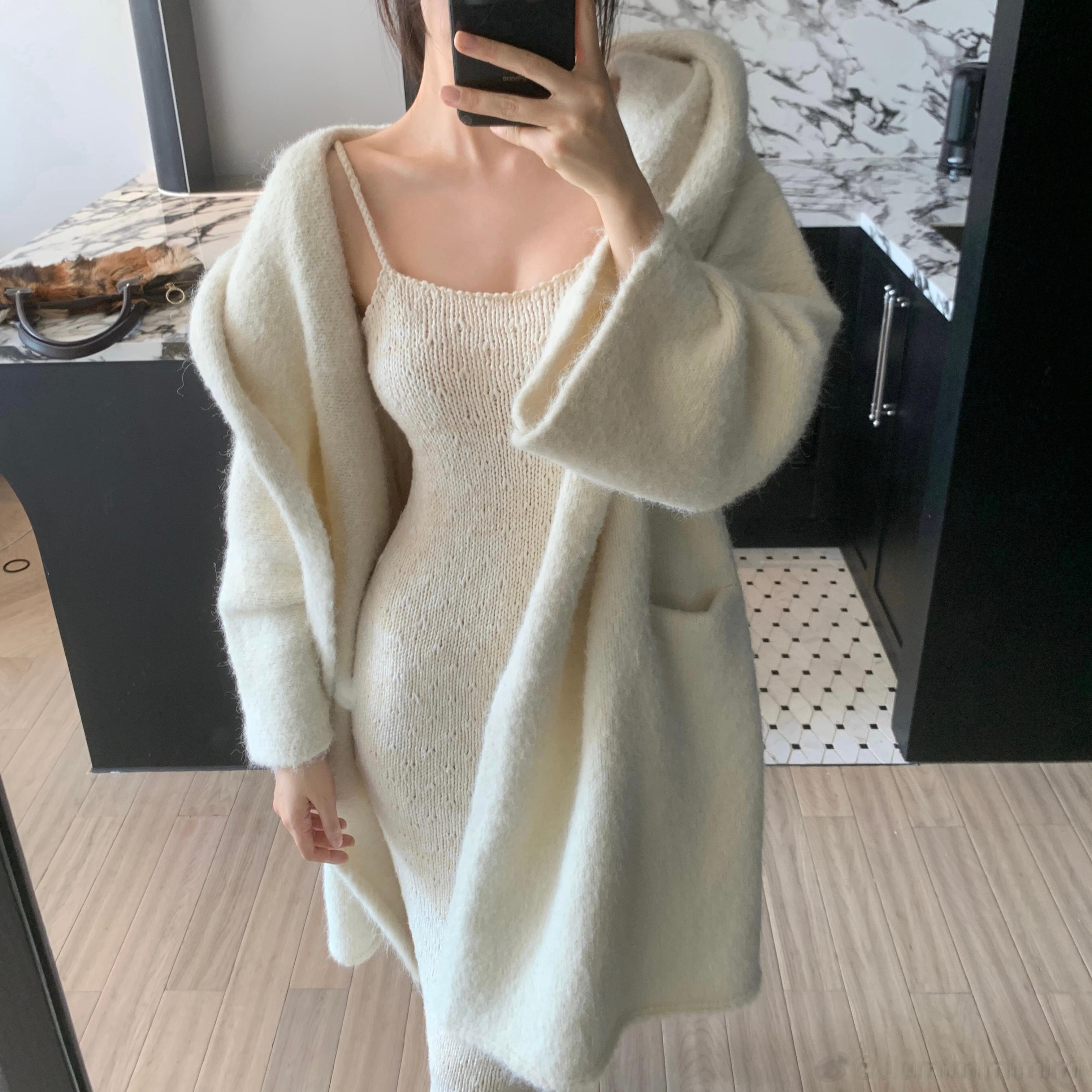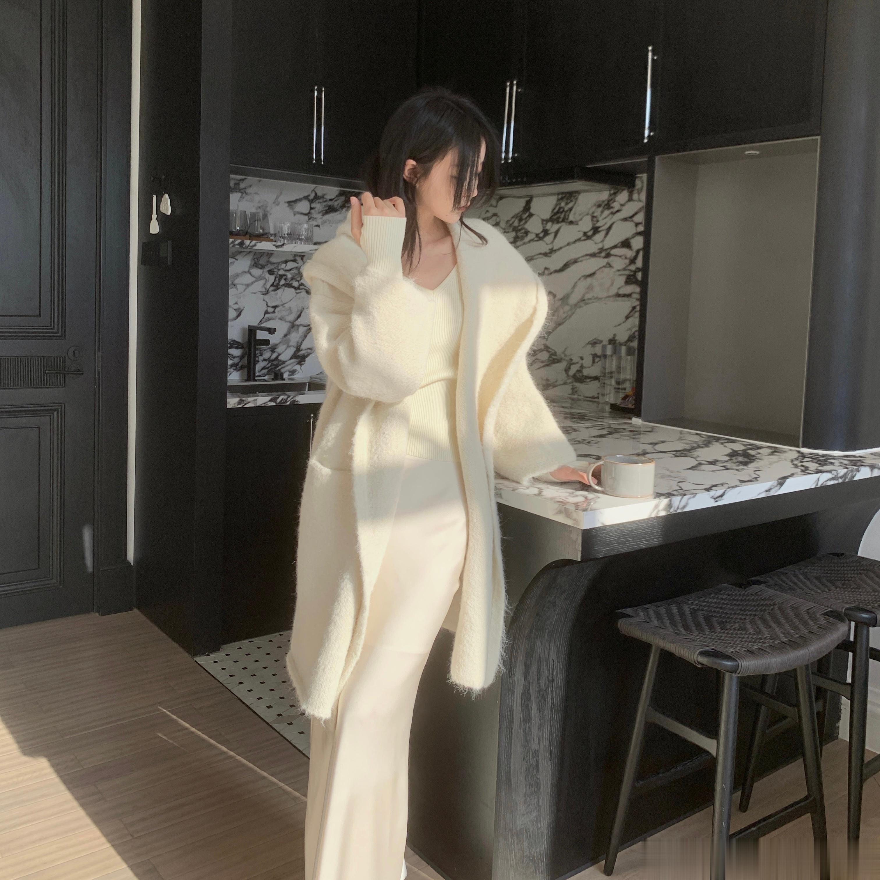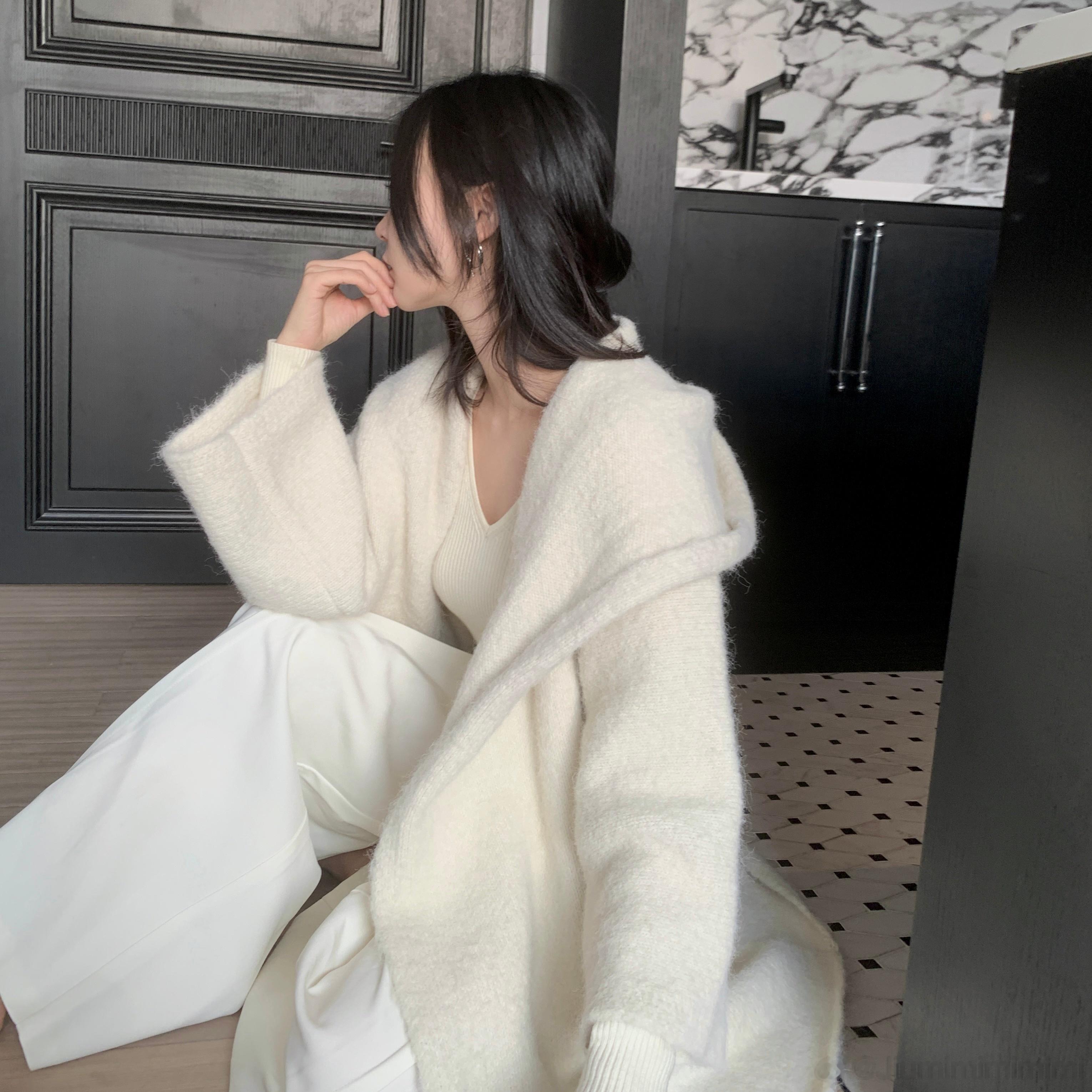 前长后短 像个小披肩的设计 蛮灵的~ 含山羊绒 羊毛 上身舒适柔软 冰淇淋米杏