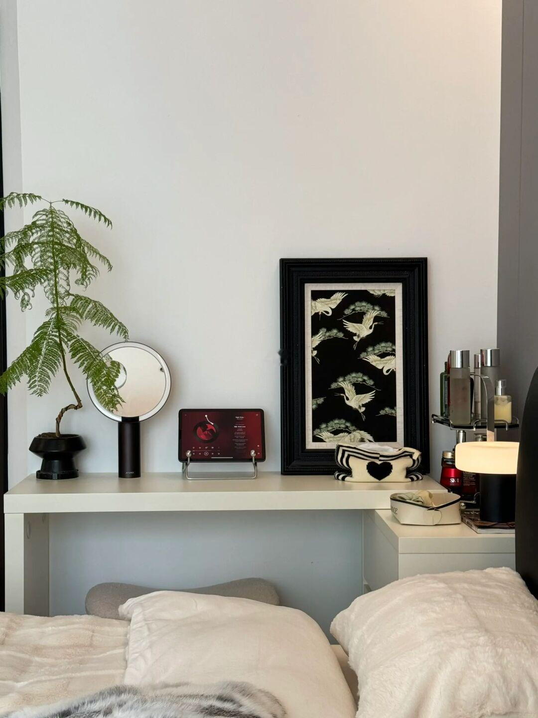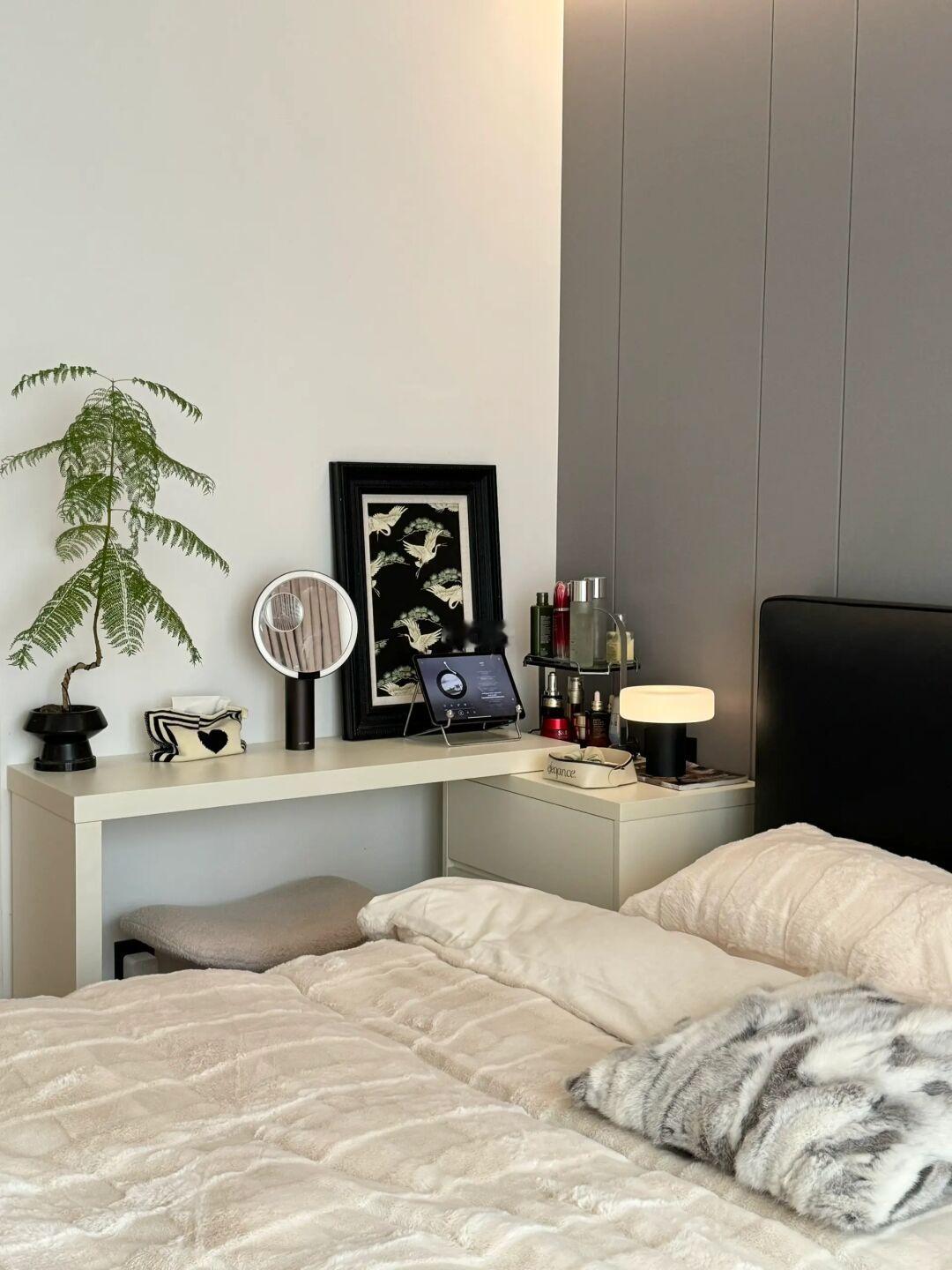 3️⃣用斗柜梳妆台代替床头柜更实用~