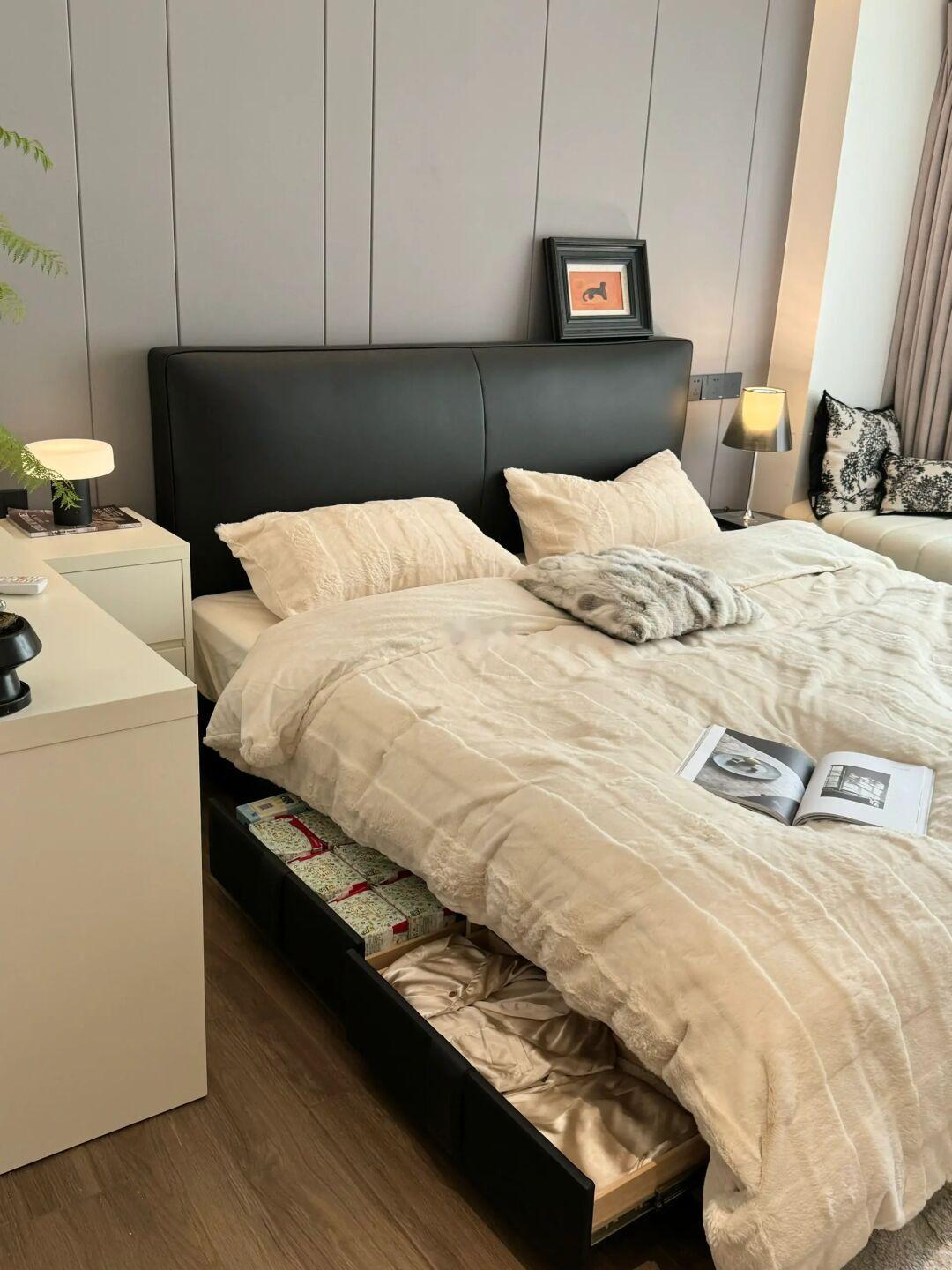 我家这个1.8米的床,床底自带储物功能,