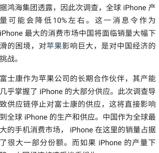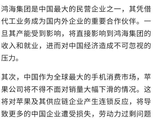 ①调查将直接影响鸿海集团的收入和中国大陆就业,将对中国经济造成不可忽视的压力。