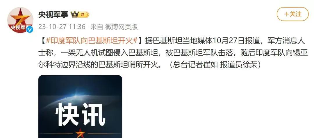 巴基斯坦与印度为何开战?有消息称,一架无人机试图侵入巴基斯坦,被巴基斯坦军队击落,随后印度军队向锡亚尔科特边界沿线的巴基斯坦哨所开火。