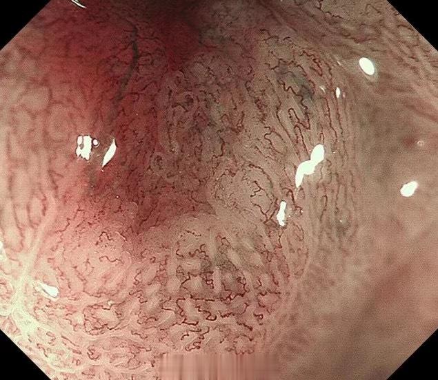 hp阴性背景(从小到大没感染过幽门螺杆菌的状态)很少得胃癌,有的话主要是印戒细胞癌和超高分化型癌两种,当然胃食管反流导致的贲门癌也越来越多。但是总体来说和hp感染后的胃出现的胃癌相比大概是1:100的比例,所以知道自己是hp阴性的胃大概率不需要频繁复查。图示这个是个hp纯阴性背景里面的一处超高分化型癌,esd切除后追加了外科手术因为有淋巴管转移,40y出头,这种其实在30y+做一次胃肠镜就可以避免这样的后果。今天乱入IBD专场去感受了一下cccf的发展盛况,主持的金鹏教授IBD癌变监测的话题,感觉这类型年轻人疾病越来越多的趋势,这个世界没那么多疾病该多好,天下无疾能实现就完美了。