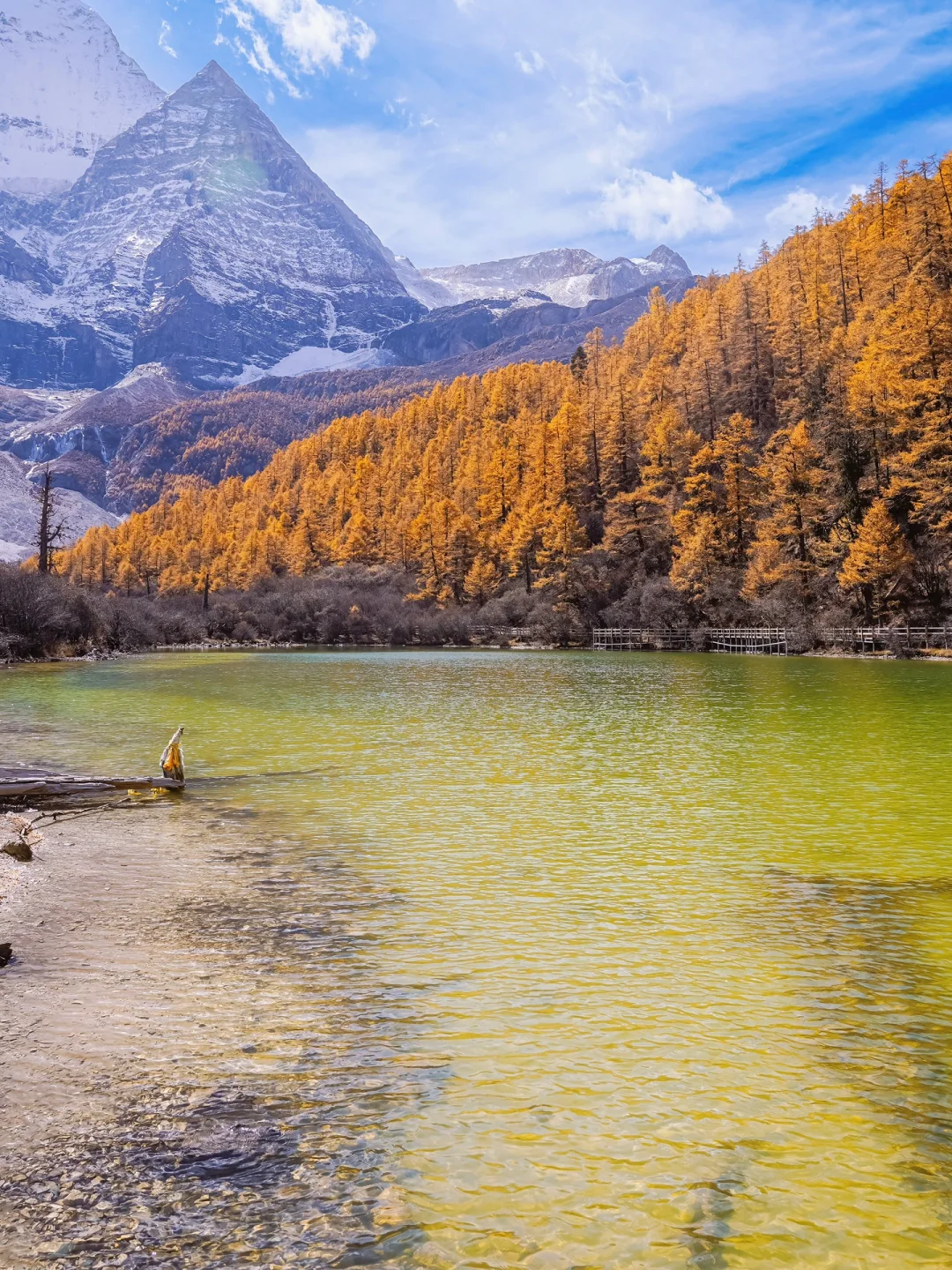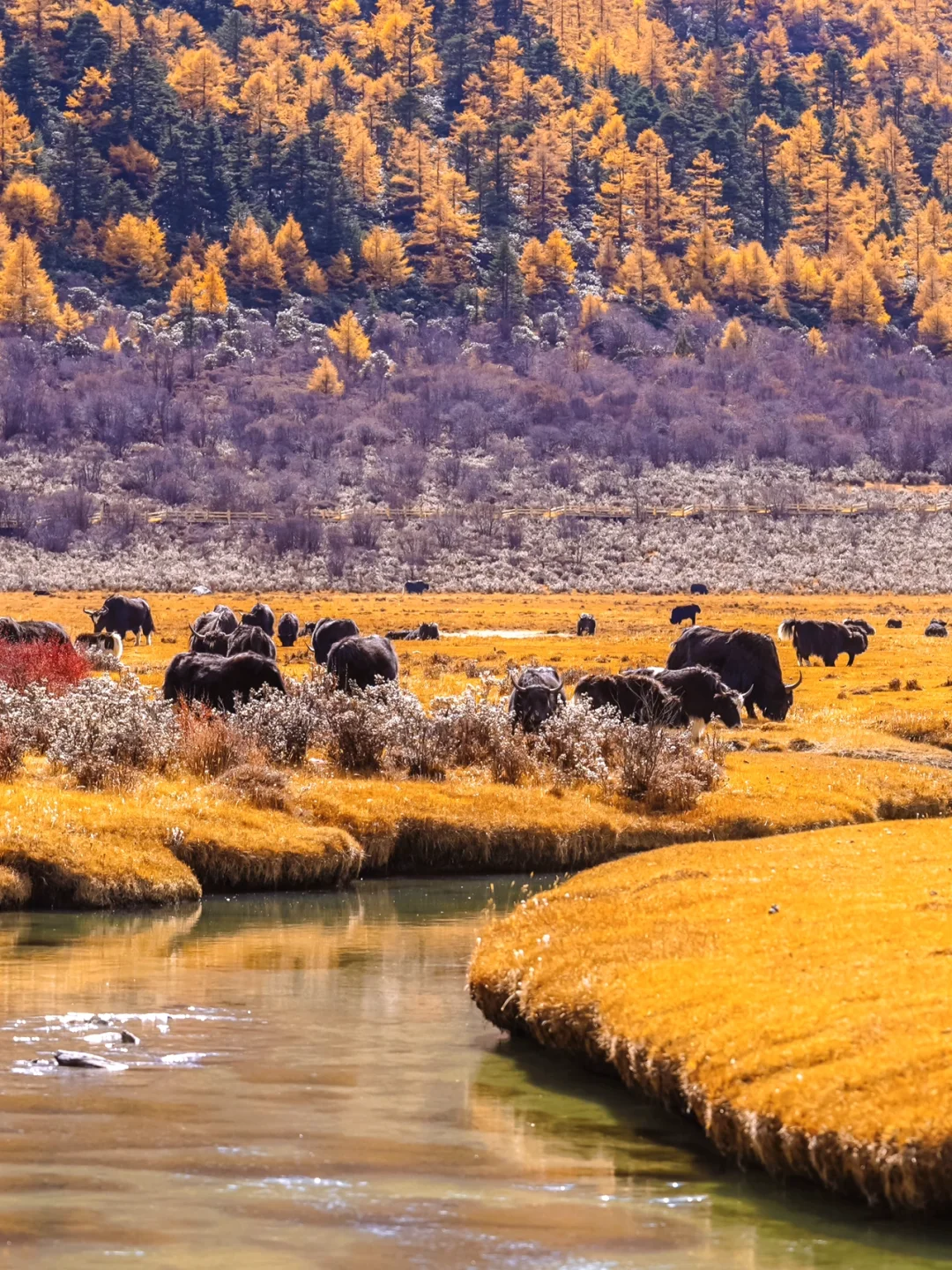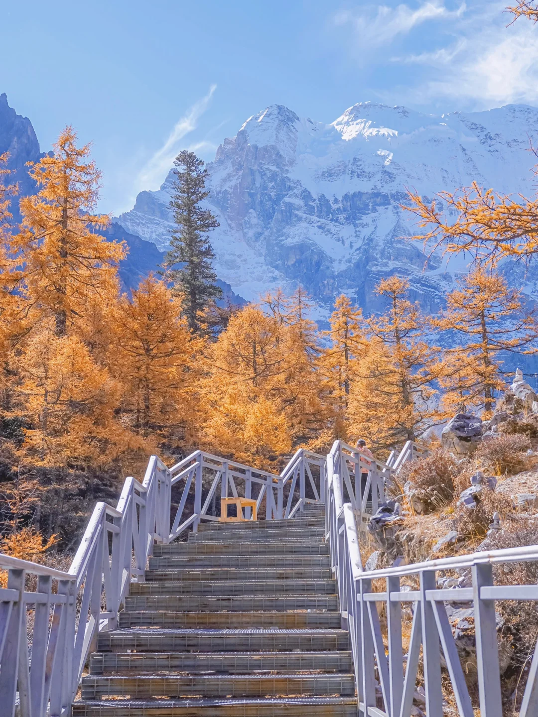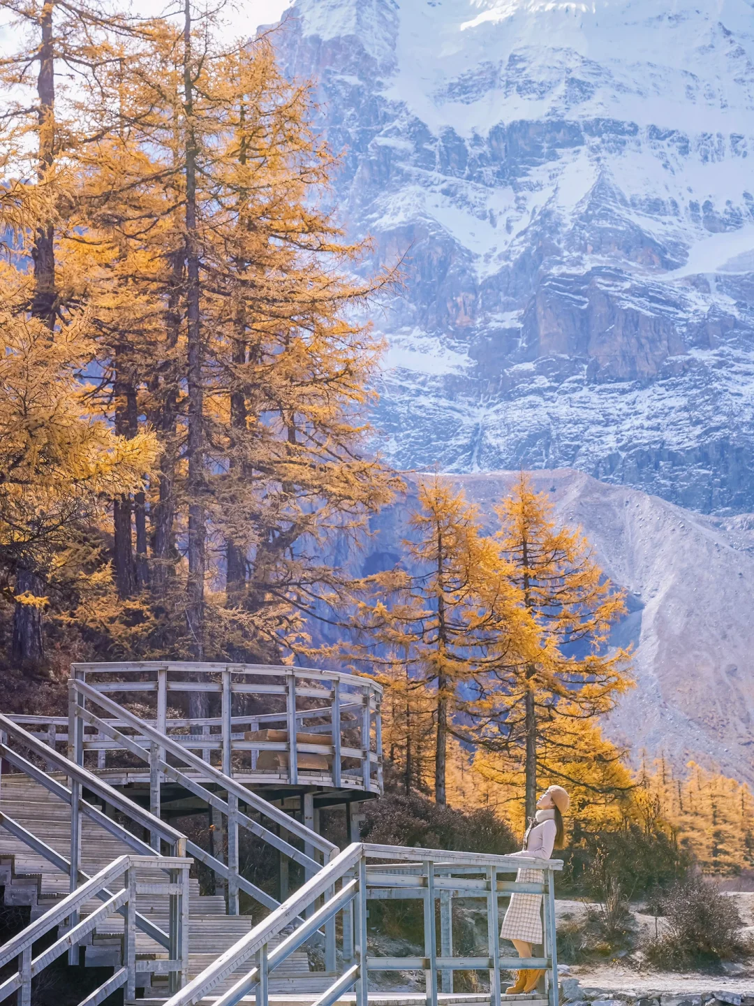 稻城最大的林区,距离亚丁景区25公里,海拔5146m,可以看见亚丁三座神山,秋色一绝 🍂目前是很小众的地方,人很少。而且无需门票。这里拍星空也很惊艳✨