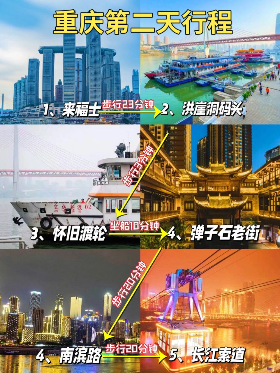 🔆D2:来福士-洪崖洞码头-怀旧渡轮-弹子石老街-南滨路-长江索道