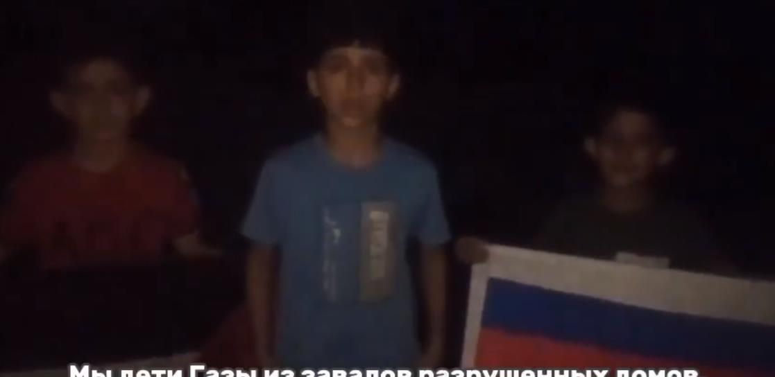“真主的恩典与祝福归于您,尊敬的俄罗斯总统弗拉基米尔·普京!加沙的孩子们从加沙心脏地带,从被摧毁的家园废墟中,向您发出呼吁。针对我们手无寸铁的巴勒斯坦人的战争正在进行。我们请求您制止这场残酷的种族战争。所有使用巴勒斯坦儿童的鲜血进行交易的人,都将在审判日受到审判。”
