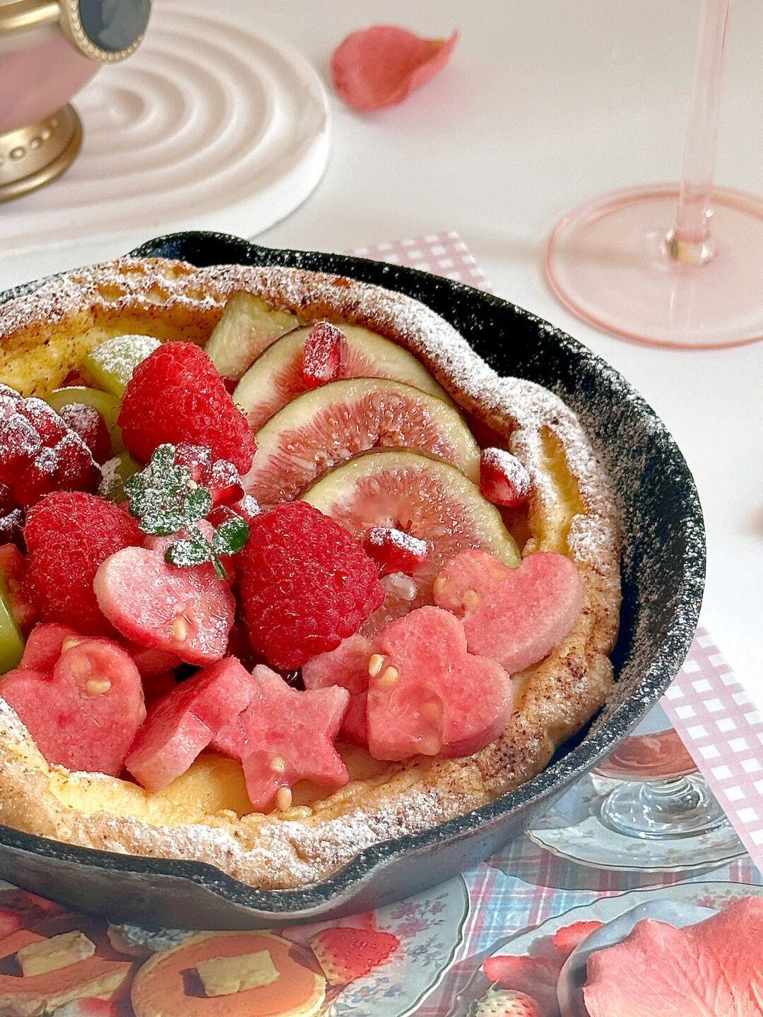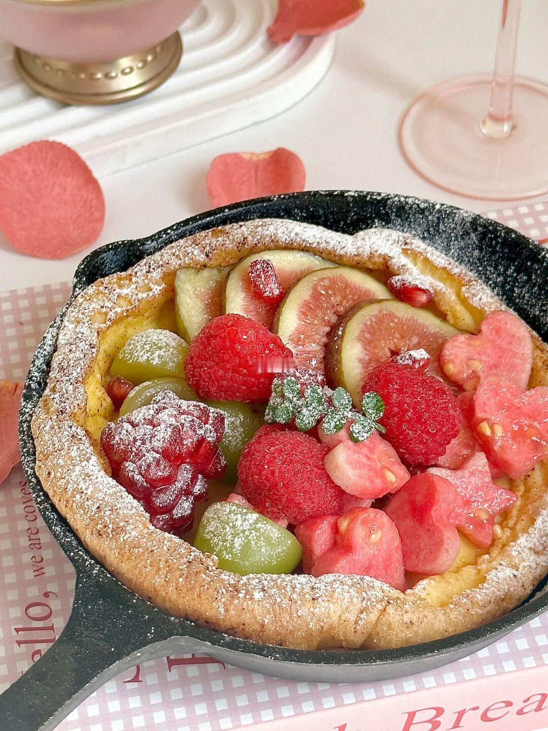 今日份早餐是💗💗💗超多粉粉水果的甜口荷兰松饼&粉粉的西柚石榴气泡水🫧