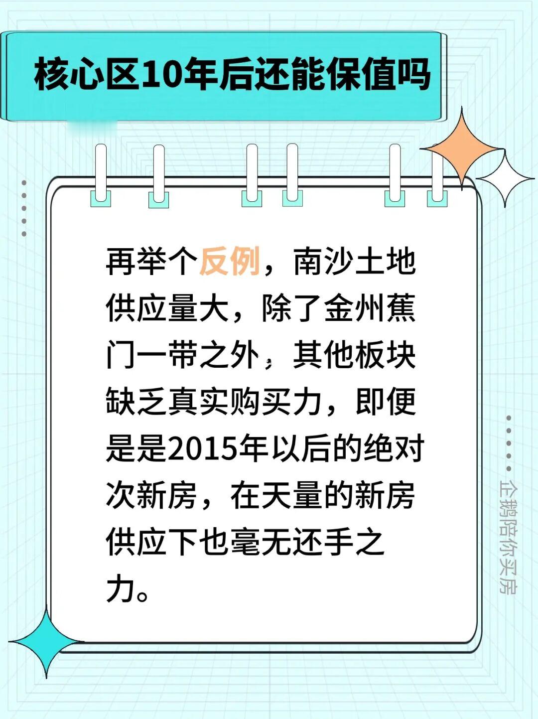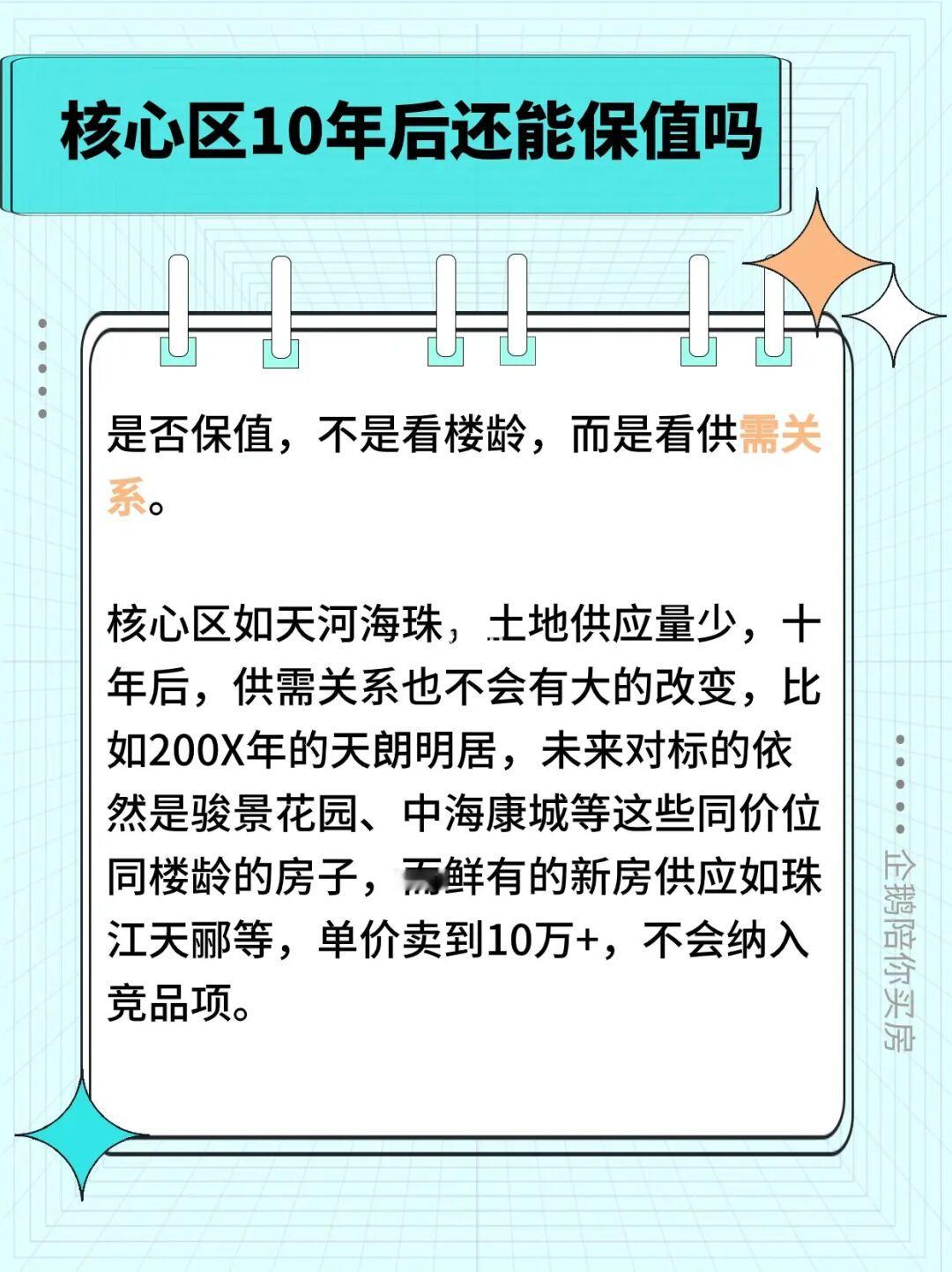 是否保值,不是看楼龄,而是看供需关系。核心区如天河海珠,土地供应量少,十年后,供需关系也不会有大的改变,比如200X年的天朗明居,未来对标的依然是骏景花园、中海康城等这些同价位同楼龄的房子,而鲜有的新房供应如珠江天郦等,单价卖到10万+,不会纳入竞品项。再举个反例,南沙土地供应量大,除了金州蕉门一带之外,其他板块缺乏真实购买力,即便是是2015年以后的次新房,在天量的新房供应下也毫无还手之力。ㅤ