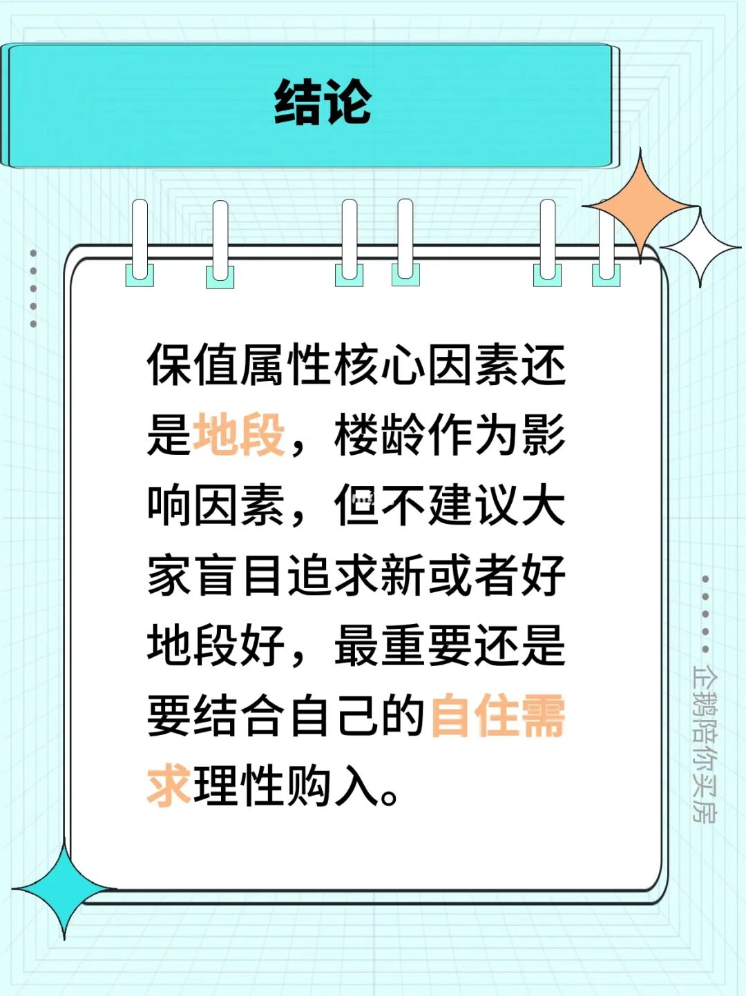 保值属性核心因素还是地段,楼龄作为影响因素,但不建议大家盲目追求新或者好地段好,重要的还是要结合自己的自住需求理性购入。