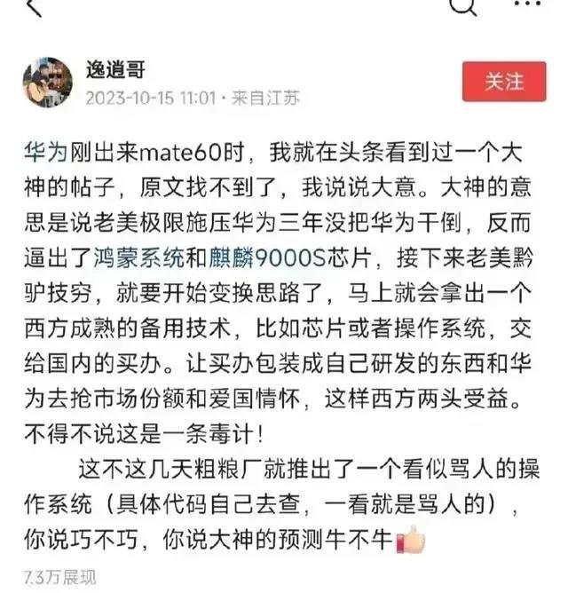 无非就是挤压华为的生存空间,一看从硬件上挡不住华为,立马从软件上截击。一个个的都开始上蹿下跳的“自研”了,你哪怕在mate60pro出现前一小时发布,面子都好看点。忽然明白华为为什么未发先售了。