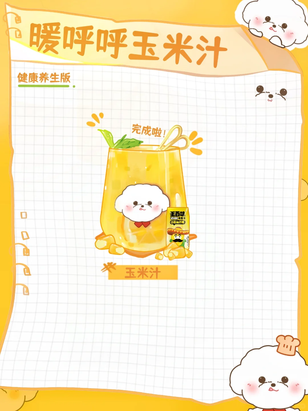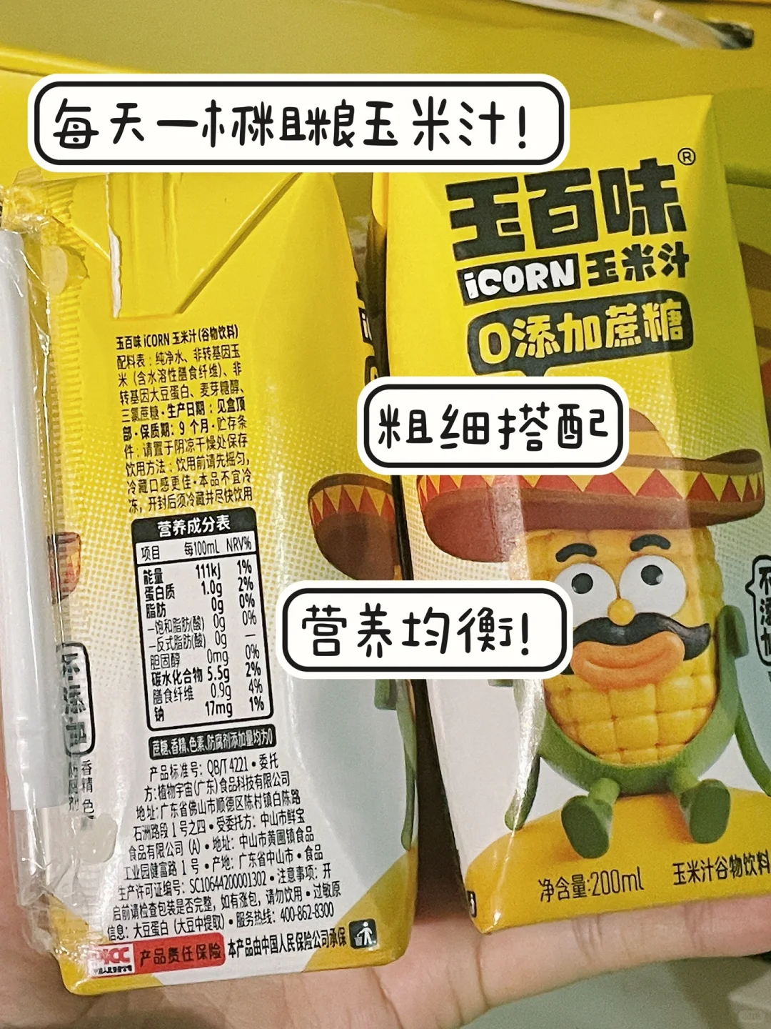 奶香玉米汁🌽 🥣材料准备 100克玉米🌽➕200毫升牛奶🥛➕30克小米➕30克大米 🥣制作步骤 1⃣️破壁机里加入100克玉米粒,30克小米,30克大米,加入200毫升牛奶,加入600毫升纯净水 2⃣️破壁机豆浆模式打30分钟就完成啦💗 🌞日常细粮吃得多,每天一杯粗粮玉米汁🌽,粗细搭配,营养均衡!太健康啦 自制的健康玉米汁超级好喝,但是现在找到这款不用自己榨的玉米汁代替更加方便啦~~ 悄悄咪咪告诉你们🤫玉百味粗粮玉米汁(并且双十一还有赠送马克杯哇!)🐛啦